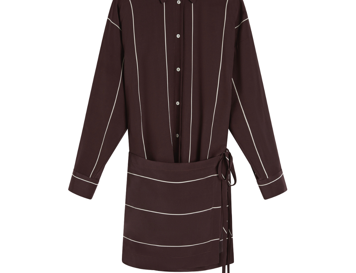 Orta Silk Wrap Mini Dress in Mocha Stripe