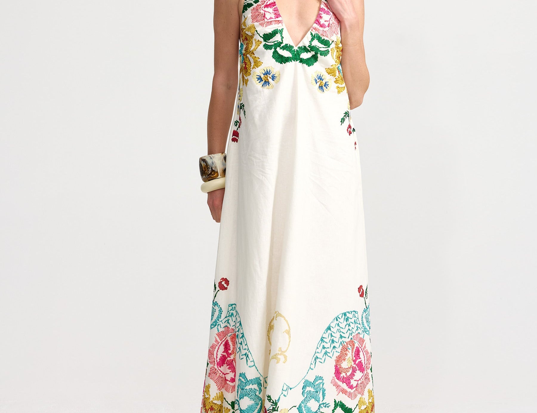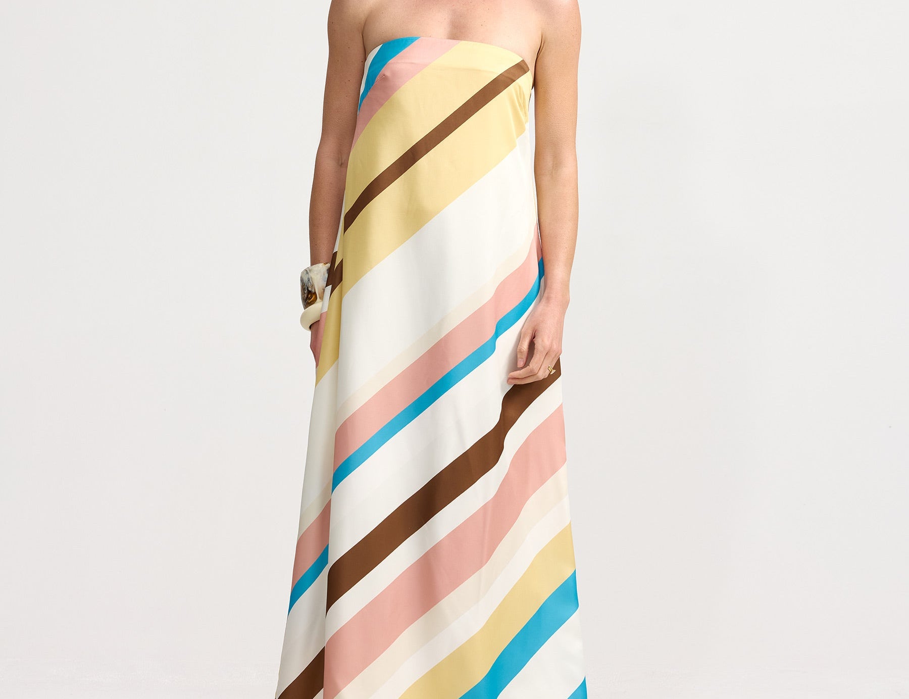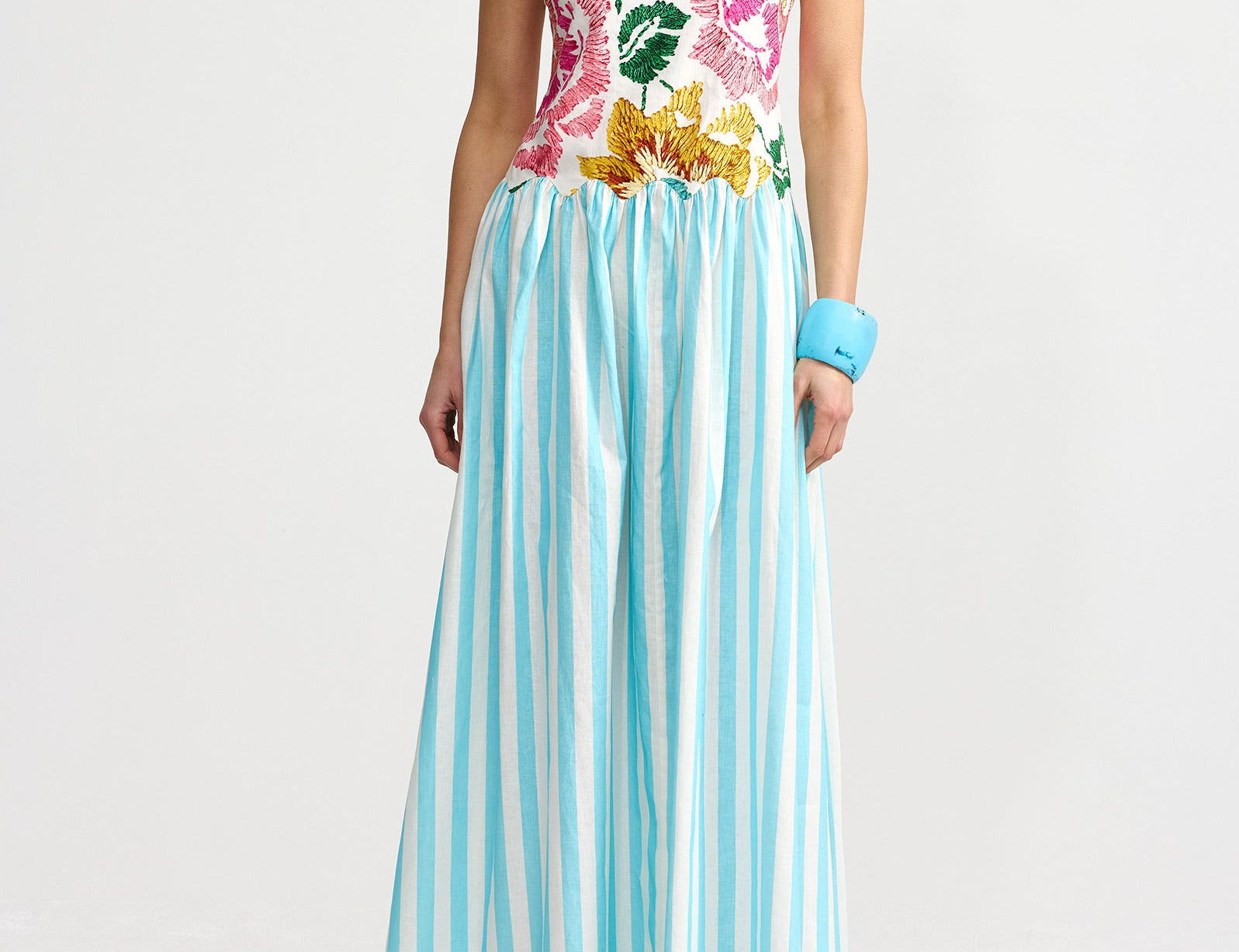 Ilana Off Shoulder Mini Dress in Blue Ivory