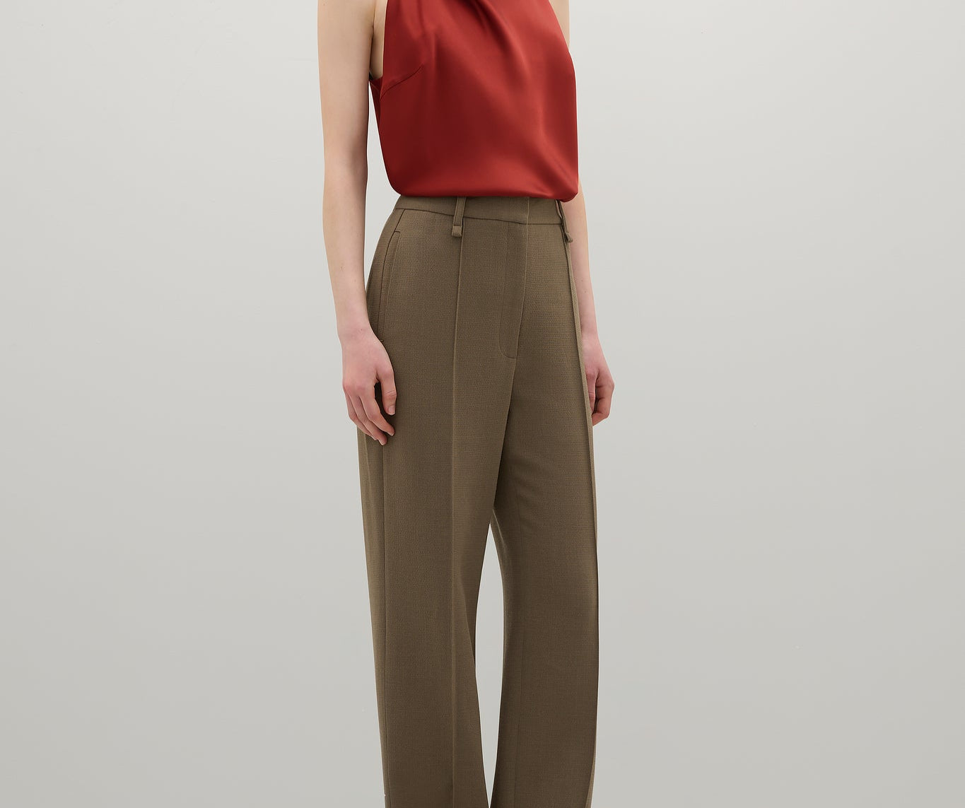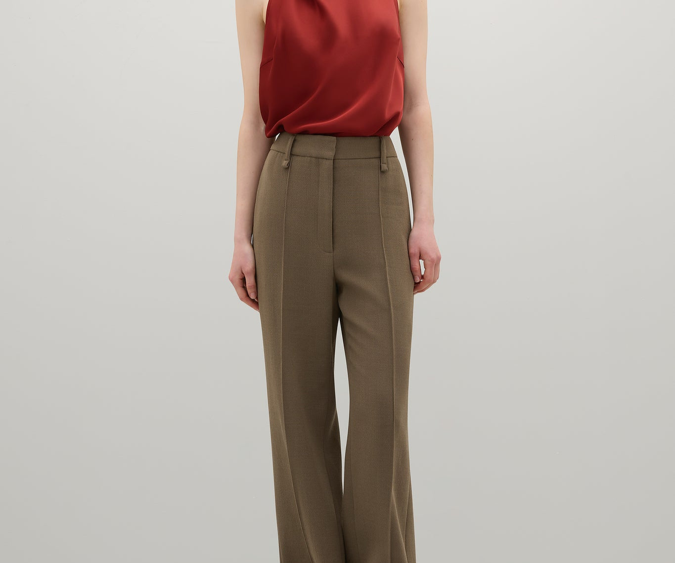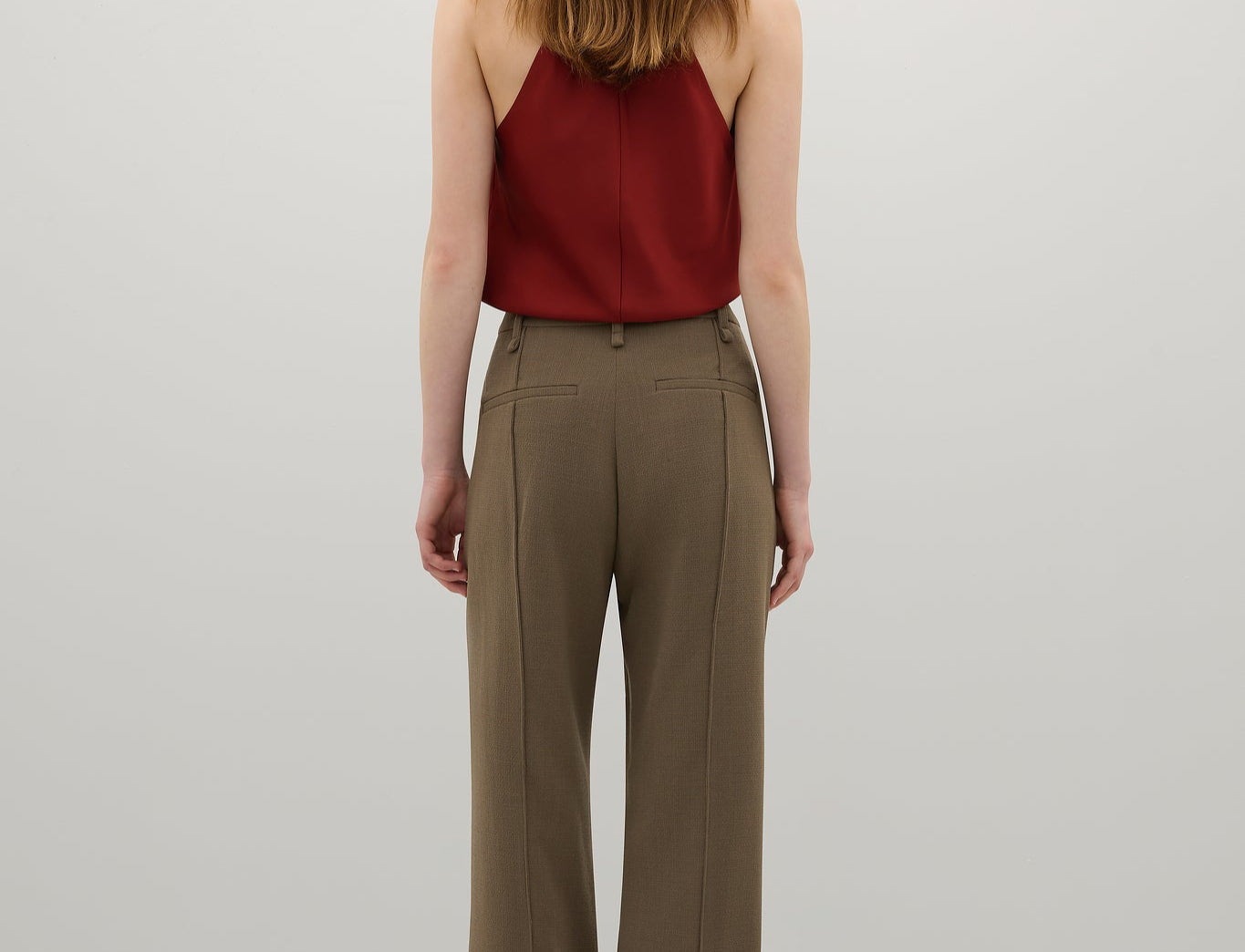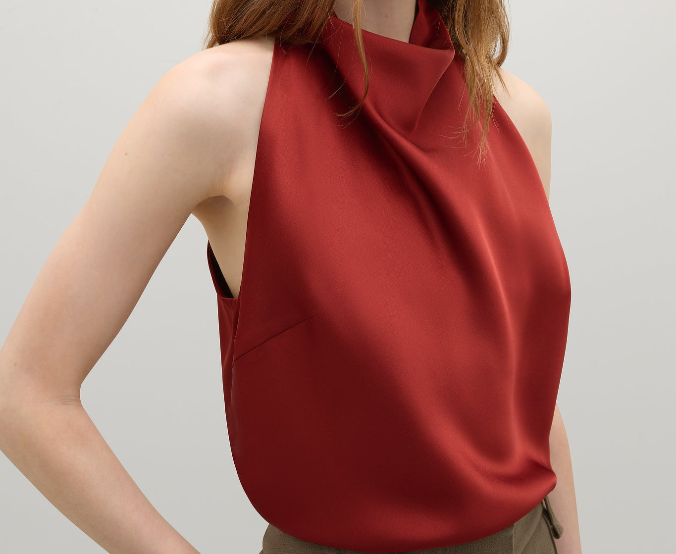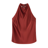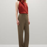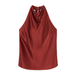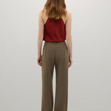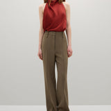 Introducing A.Emery’s Alfen Top in Brick, an elegant halter-neck silhouette crafted from premium Japanese triacetate. Designed with a soft drape neckline and self-covered button closures at the nape, this bias-cut top creates a smooth, fluid fit that flatters the form. A timeless addition to elevated day or evening styling.