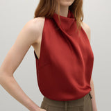 - Draped halter neckline