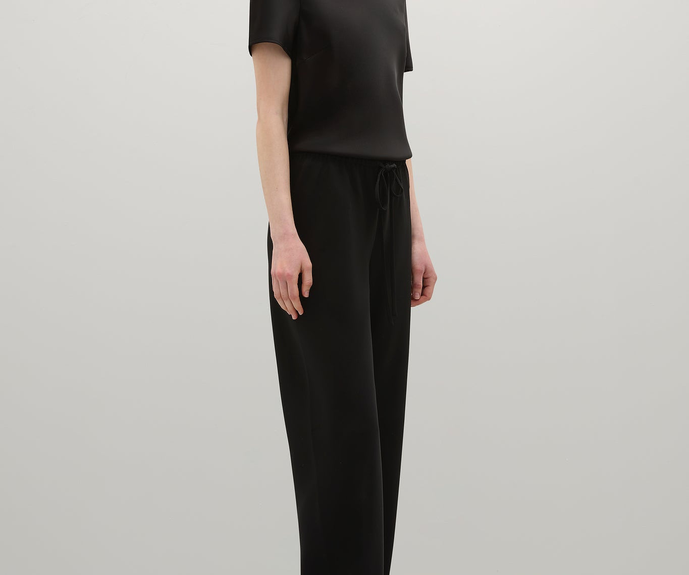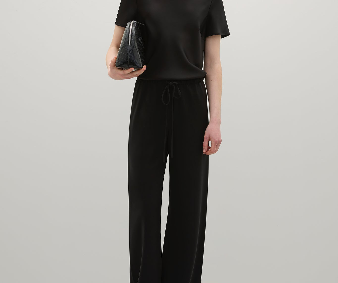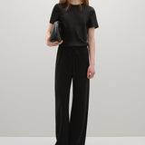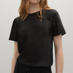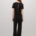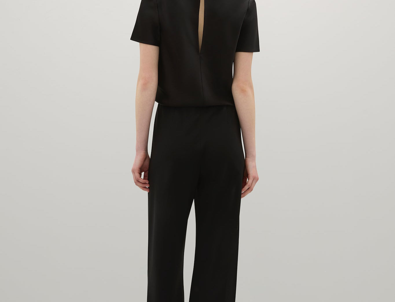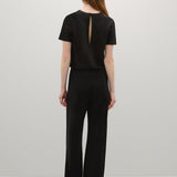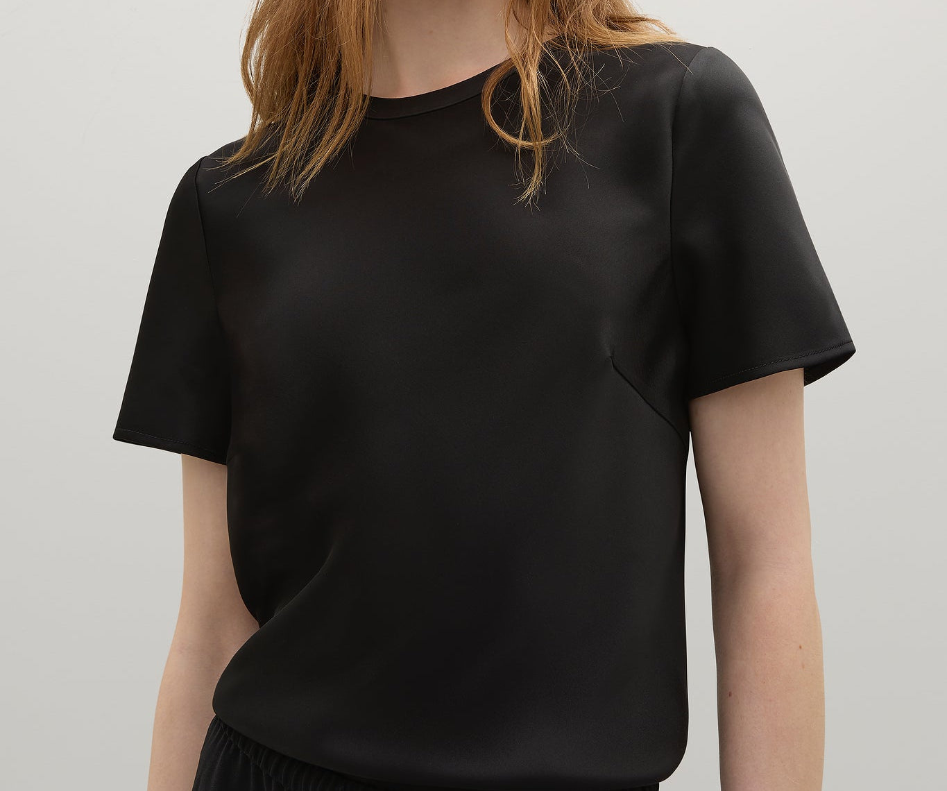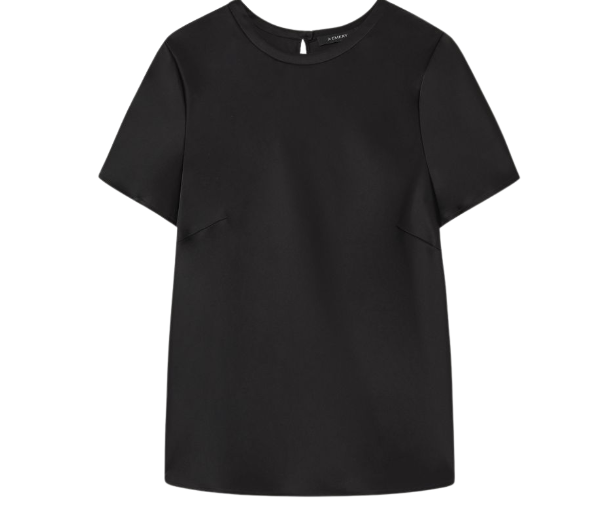 Introducing A.Emery’s Arca Top in Black, a refined short-sleeve shirt top silhouette crafted from premium Japanese triacetate. Designed with a crew neckline and button closure at the nape, this minimal Arca top is cut on the bias for a universally flattering fit and soft drape. Perfect for styling from day to evening, offering a polished yet effortless look.