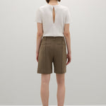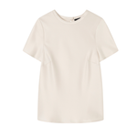 Introducing A.Emery’s Arca Top in Oyster, a refined short sleeve shirt silhouette crafted from premium Japanese triacetate in a cream ivory oyster hue. Designed with a crew neckline and button closure at the nape, this minimal top is cut on the bias for a universally flattering fit and soft drape. Perfect for styling from day to evening, offering a polished yet effortless look.
