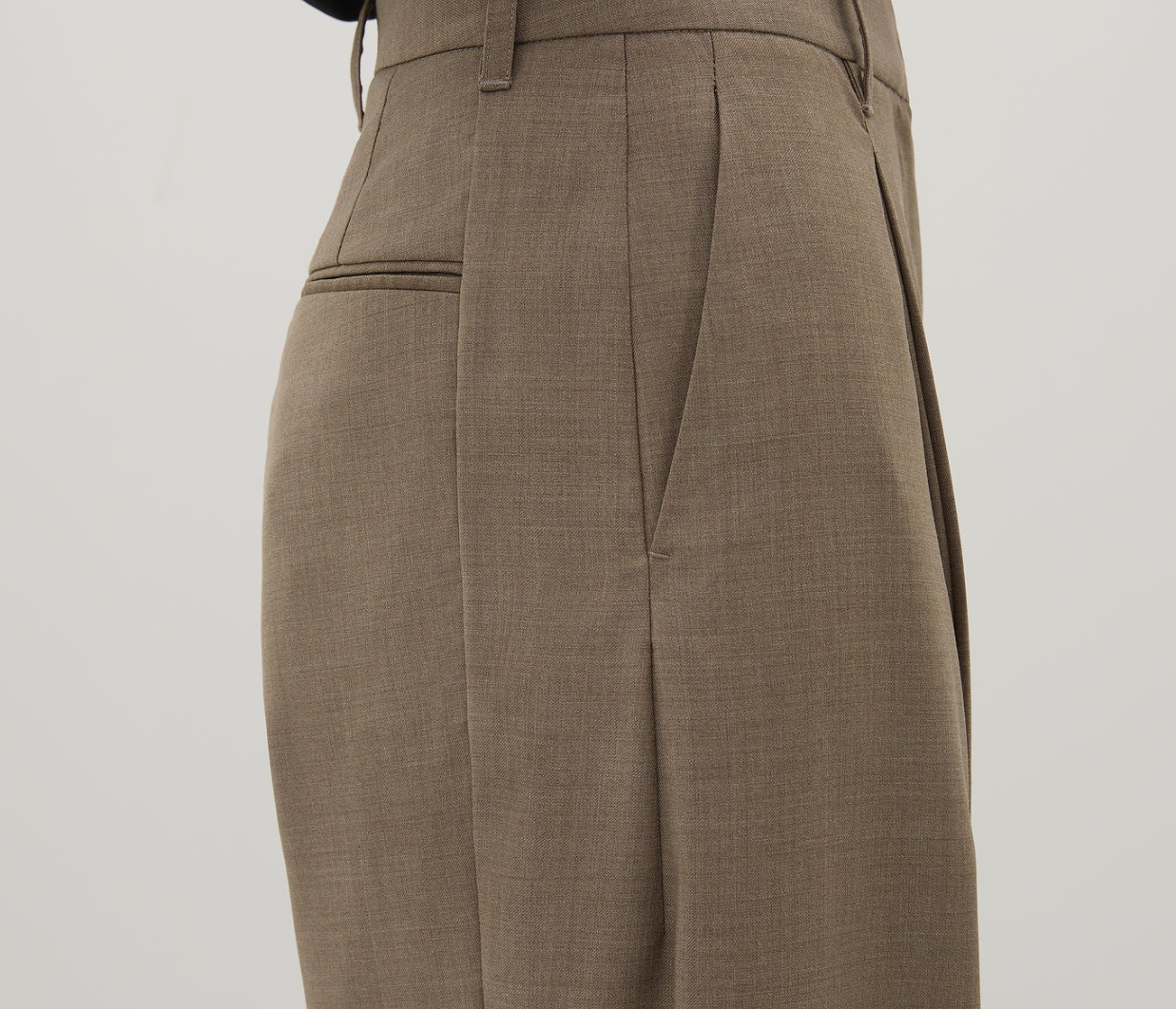 Introducing the Goddard Pant in Flax Melange is a classic silhouette with a focus on lightweight luxury. Designed with a wide-leg silhouette and a flattering high waist, these pants feature elegant double pleats that add depth and movement. The side seams are moved towards the back, elegantly cutting off the jet pocket.