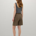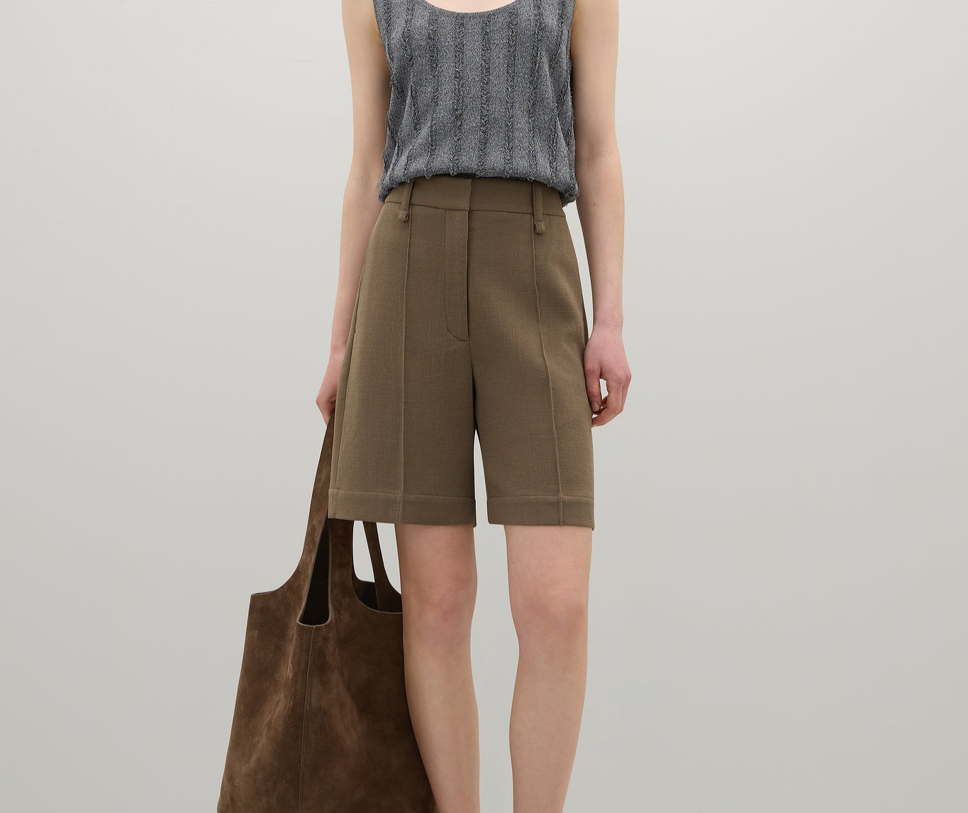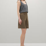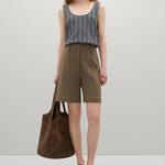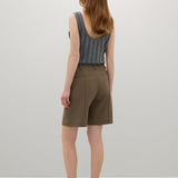 Introducing A.Emery’s Keely Short in Sable, a relaxed tailored bermuda short silhouette in an espresso brown color hue. Designed from luxurious Turkish wool with pintuck detailing through the front and back leg, the style features belt loops and cutaway pockets, balancing structure with ease for an elevated everyday look.