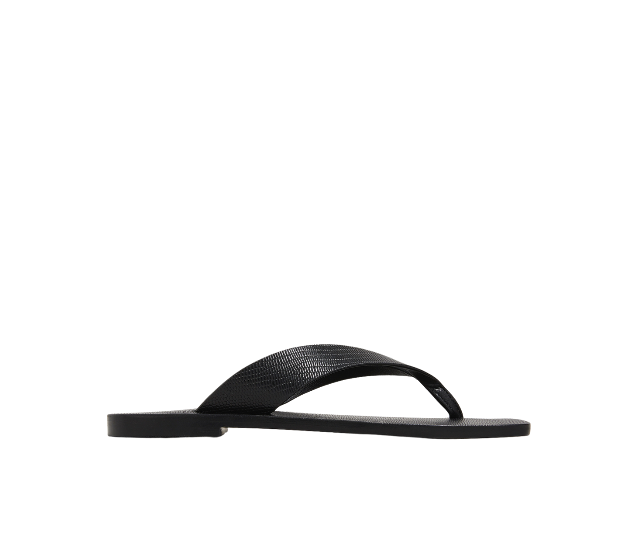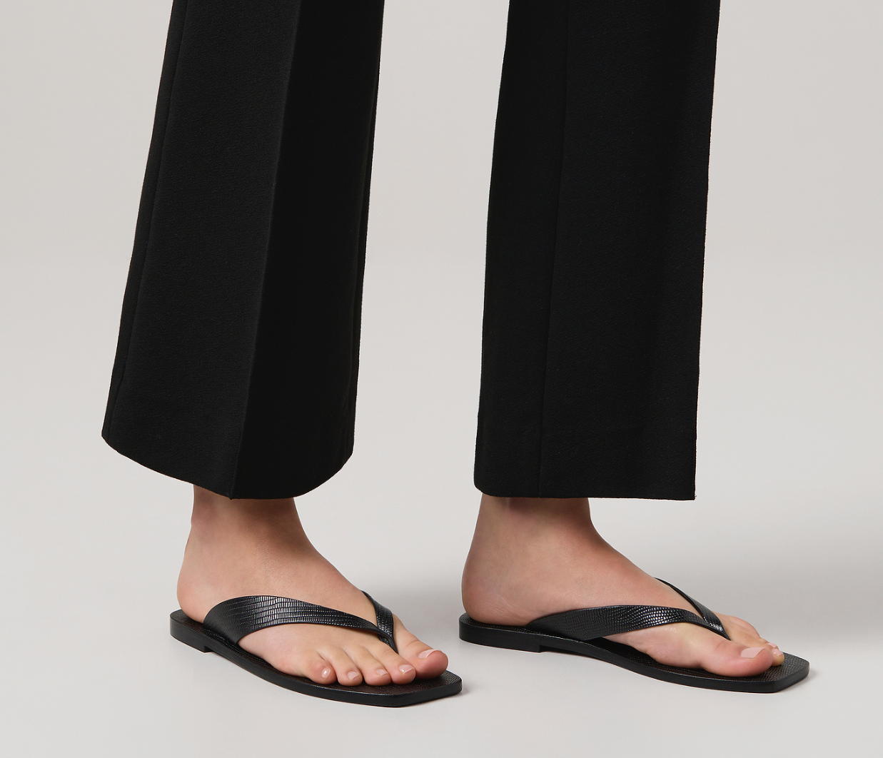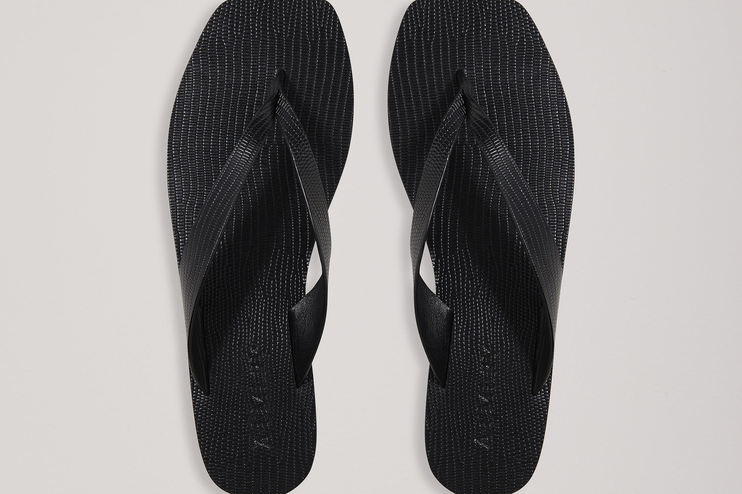 Introducing A.Emery’s Kinto Sandal in Black Embossed Lizard, a modern interpretation of the classic thong sandal. Designed with a square-shaped toe, this elevated flip-flop features a textured embossed-leather finish and full leather construction for lasting comfort and wear.