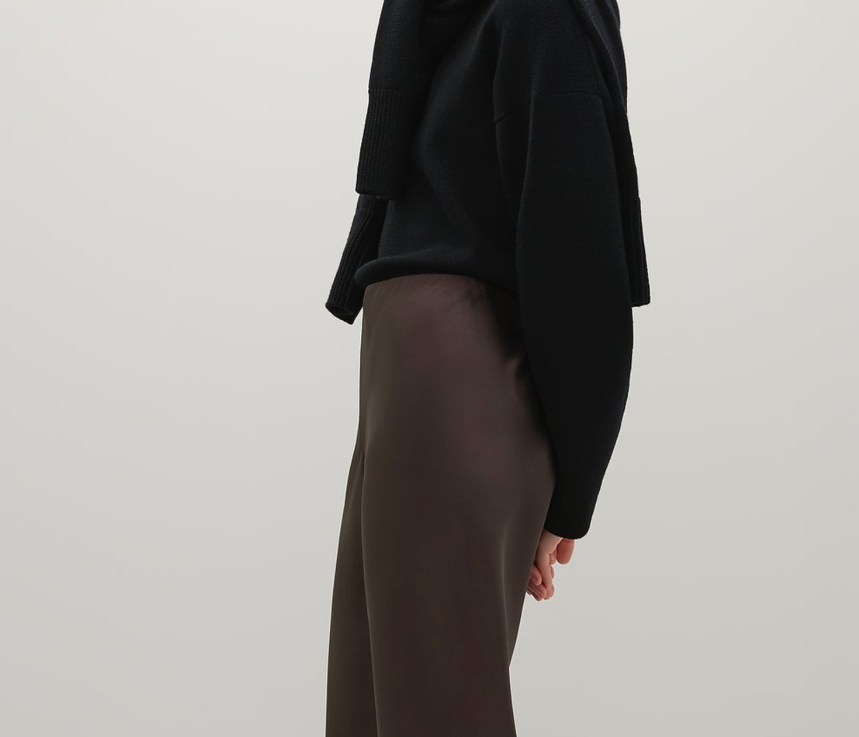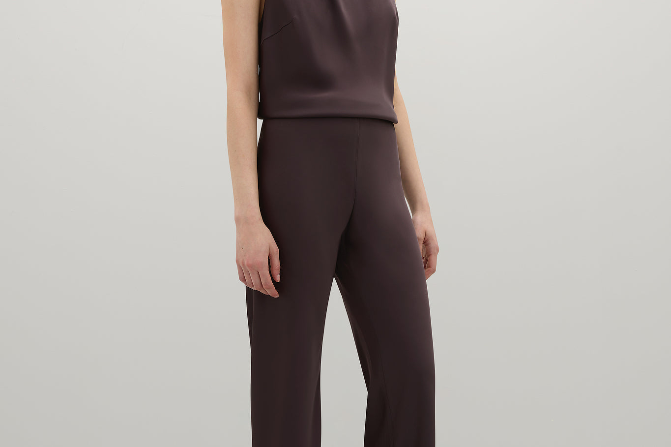Introducing A.Emery's Myrna Pant in Umber, a refined and elegant silhouette, expertly cut on the bias to drape effortlessly on the body. Crafted from luxurious Japanese triacetate satin, it boasts a seamless side and an internal grosgrain elasticated waistband for added comfort and ease of wear.