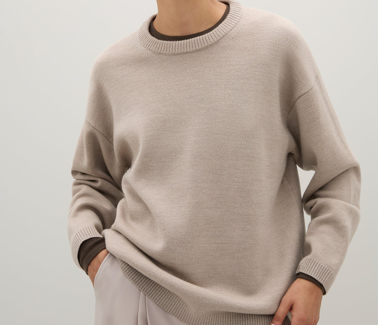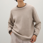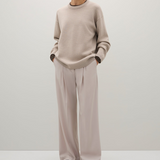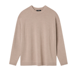 Introducing the Reid Crew Knit in Almond Melange a generously cut crewneck knit crafted from a luxurious merino wool blend.