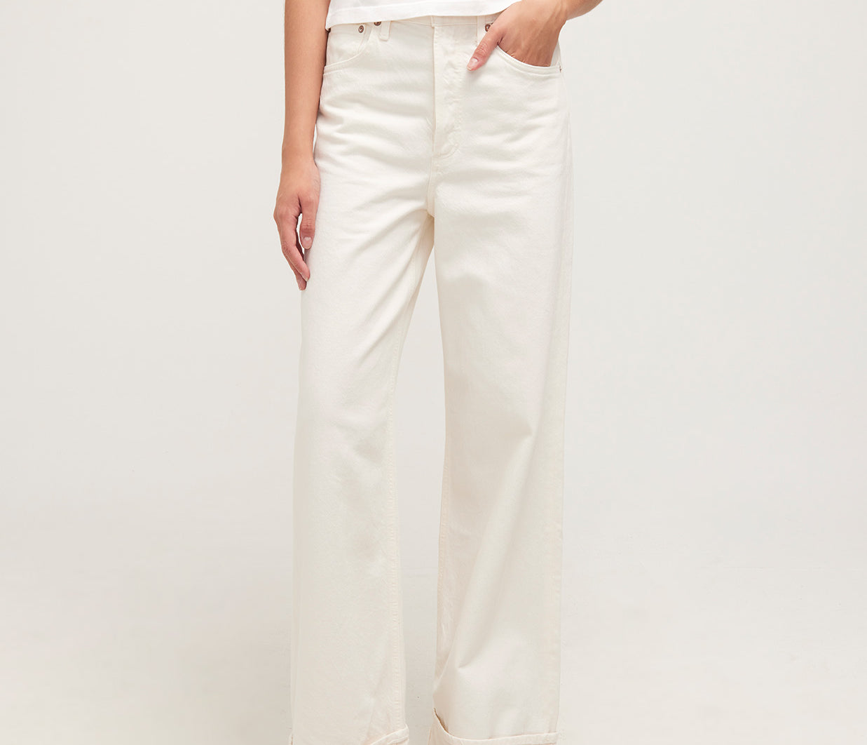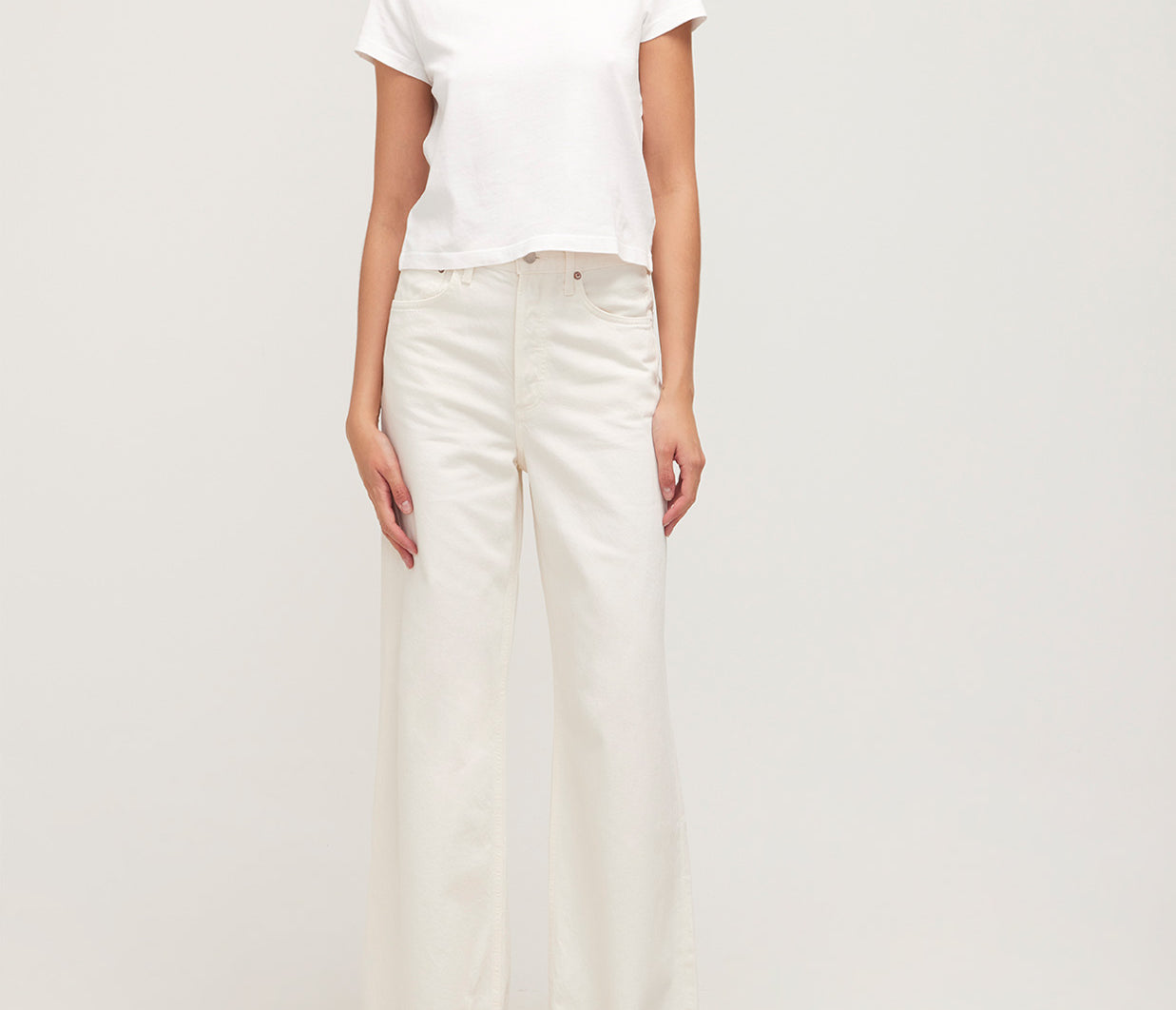 The Dame High Rise Wide Leg Jean embraces the cuff trend with its waist-accentuating high-rise and relaxed, wide leg featuring an untacked cuff. Style this statement piece with a sleek tee for an ultra-flattering look. Crafted from mid-weight zero-stretch organic cotton, it offers all-day ease with a subtle drape.