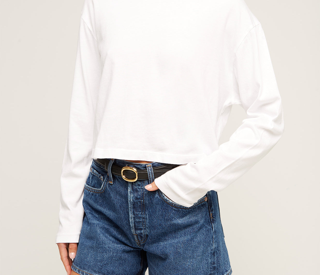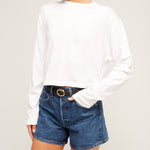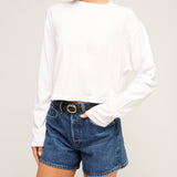 Ultra comfortable and ultra soft, Agolde's Mason Long Tee is the ultimate relaxed staple. Featuring an intentionally oversized, cropped silhouette, finished with a slouchy drape, it is the ideal style to pair back with denim and a loafer.
