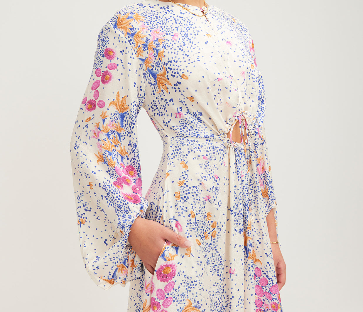 Introducing Agua’s ethereal kaftan maxi dress, a captivating blend of effortless elegance and sheer sophistication. Crafted from lightweight, breathable fabric, the Antonieta Maxi Kaftan in Capullo is designed to keep you cool and stylish during the sun-drenched days of summer. Featuring a flowing silhouette and delicate sheer fabric, this maxi dress exudes an air of romantic charm, perfect for leisurely strolls along the beach or sunset cocktails by the shore. With its versatile design and timeless appeal, this maxi dress is a must-have addition to your warm-weather wardrobe.