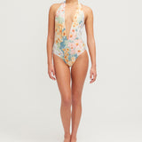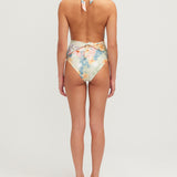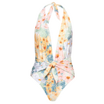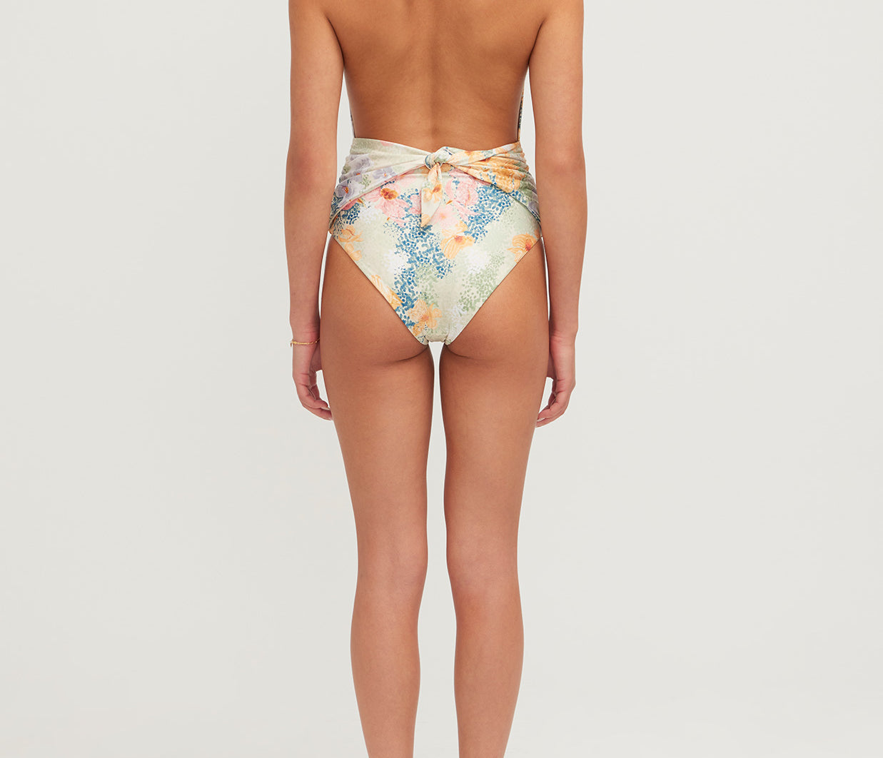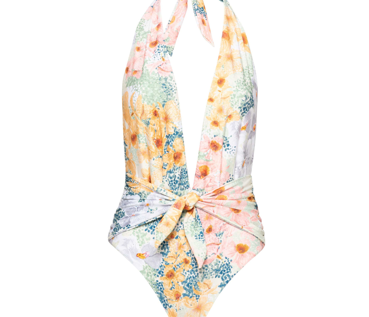In Agua’s newest collection, continuing their legacy of hyper-feminine allure, the collection introduces the delightful Salm One Piece in Florecer, a timeless essential for the modern beachgoer. Featuring a chic and versatile silhouette, the Salm one-piece is perfect for lounging by the pool or soaking up the sun on the sand. Elevate your beachwear wardrobe with Agua’s Salm one-piece paired with the Luna Mini Pareo in Florecer to exit any poolside in style.