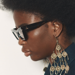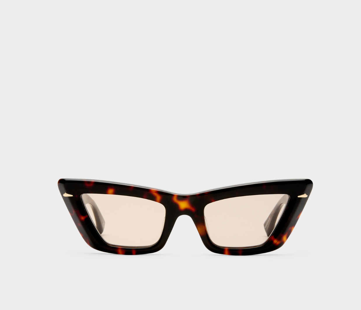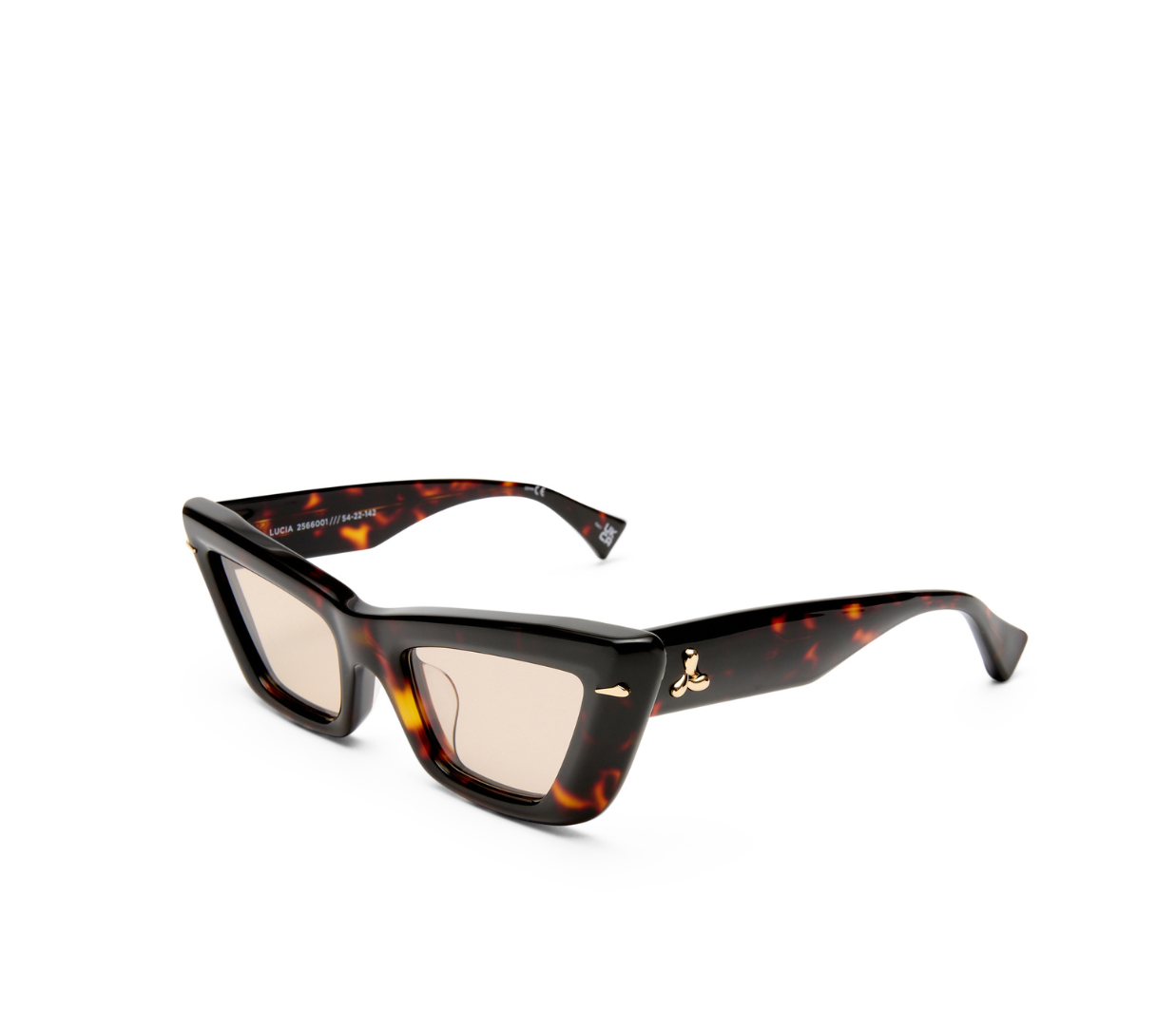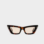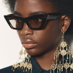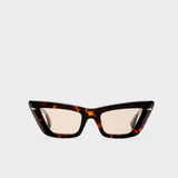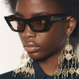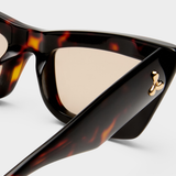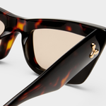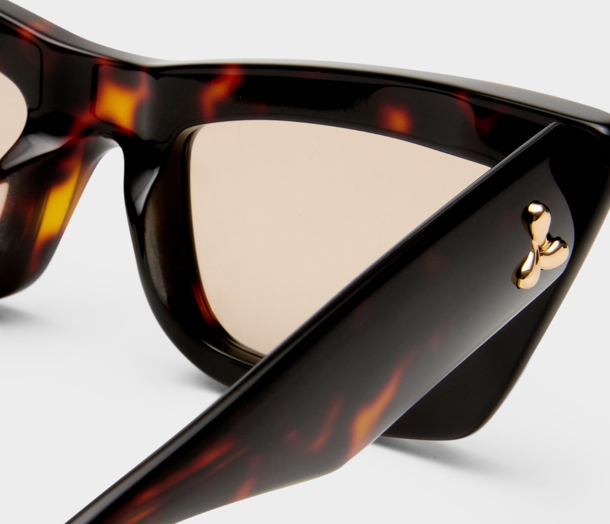 Introducing Alemais x Le Specs LUCIA Cat Eye Sunglasses in Tortoiseshell. Defined by its bold angular silhouette and upswept proportions, the LUCIA cat-eye sunglasses offer a confident, sculptural aesthetic. Featuring a flat browline and thick temples, this frame is designed with sharp outer corners to create a naturally lifted and directional look.