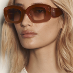 Introducing the Alemais x Le Specs CELESTINA Round Square Sunglasses in Amber. Defined by its bold rounded square silhouette and oversized proportions, the CELESTINA sunglasses are designed with soft curves and exaggerated volume. Perfect everyday statement piece.