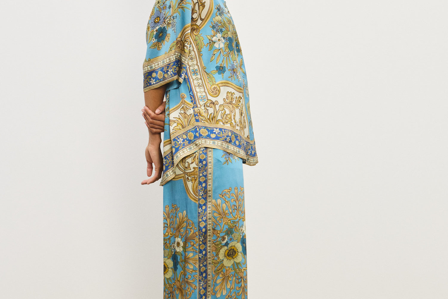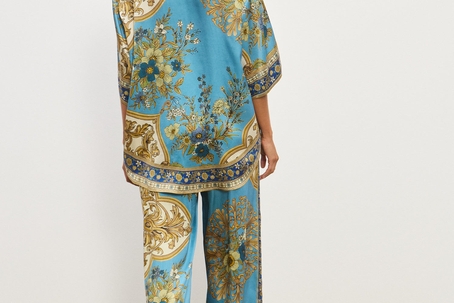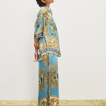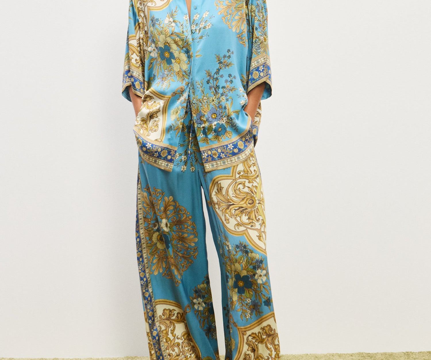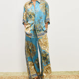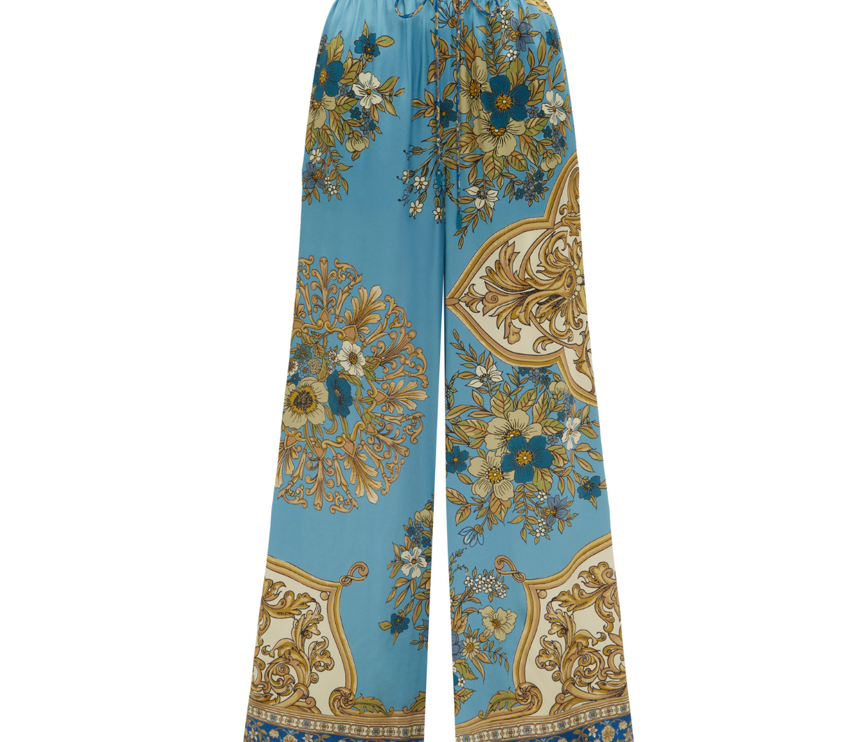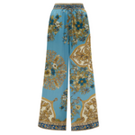 Introducing Alemais's Cassie Silk Pant in Blue. Crafted from luxurious sandwashed silk satin, this relaxed pant silhouette features an elasticated waist with adjustable ties and bespoke toggle ends. Designed with in-seam pockets for everyday ease, it’s a refined take on laid-back dressing.