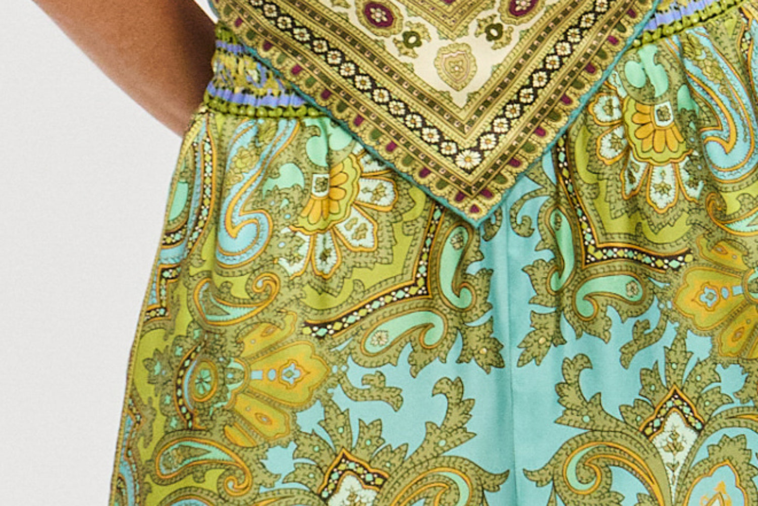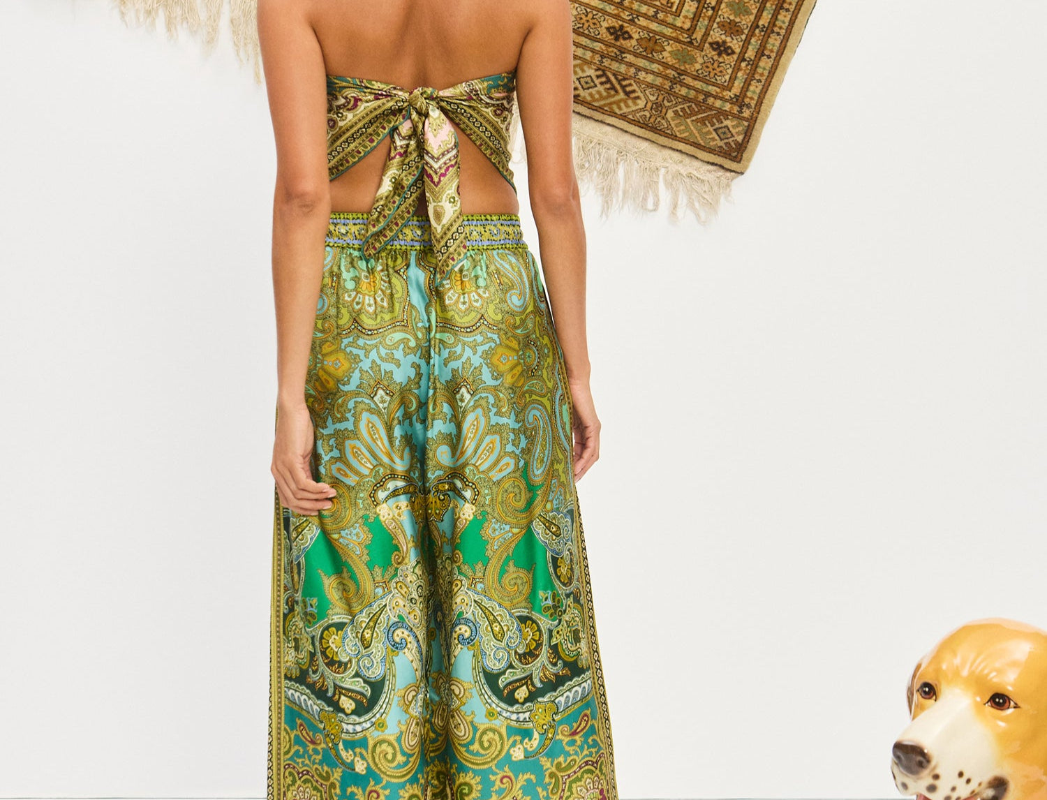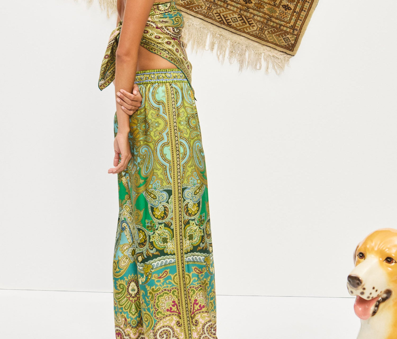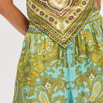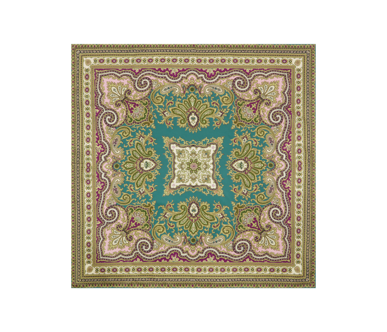 Introducing Alemais's Clemenza Silk Scarf. Crafted from 100% silk twill, this square scarf features the signature Clemenza paisley print and hand-rolled edging for a refined finish. Style it around the neck, in your hair, or tied to your bag for a touch of timeless elegance.