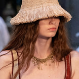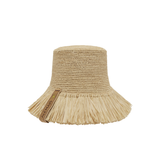 Introducing Alemais's Michelle Raffia Fringed Bucket Hat, a raffia bucket hat silhouette. The Michelle Bucket Hat is a hand-woven raffia hat featuring a relaxed bucket silhouette with a wide downturned brim with a frayed edge detailing. The perfect accessory for lazy days spent lounging on sandy shores or exploring coastal hideaways.
