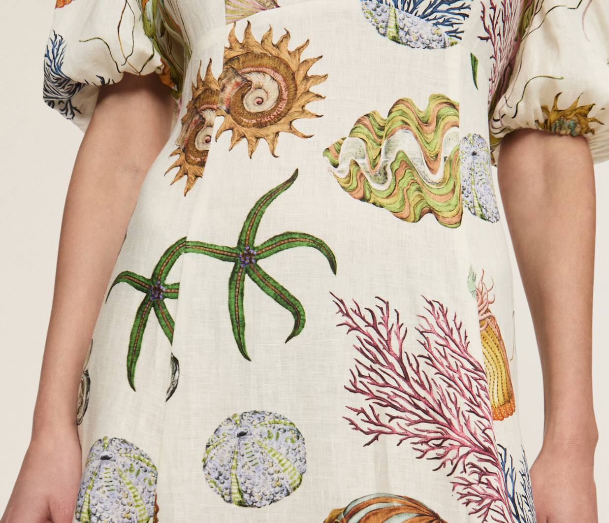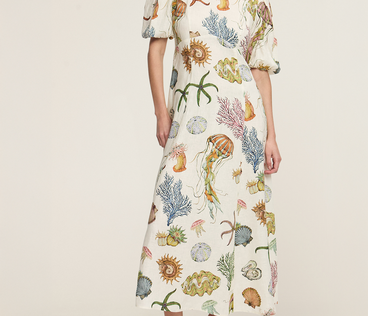 The Sea Midi Dress in Cream blends contemporary design with timeless elegance, brought to life in collaboration with renowned artist Sam Pauletto. Made from 100% European flax linen, this midi dress features a flattering fit with a fitted bodice, puff sleeves with delicate tucks, and a beautifully structured A-line skirt that flows effortlessly for a chic and relaxed look.