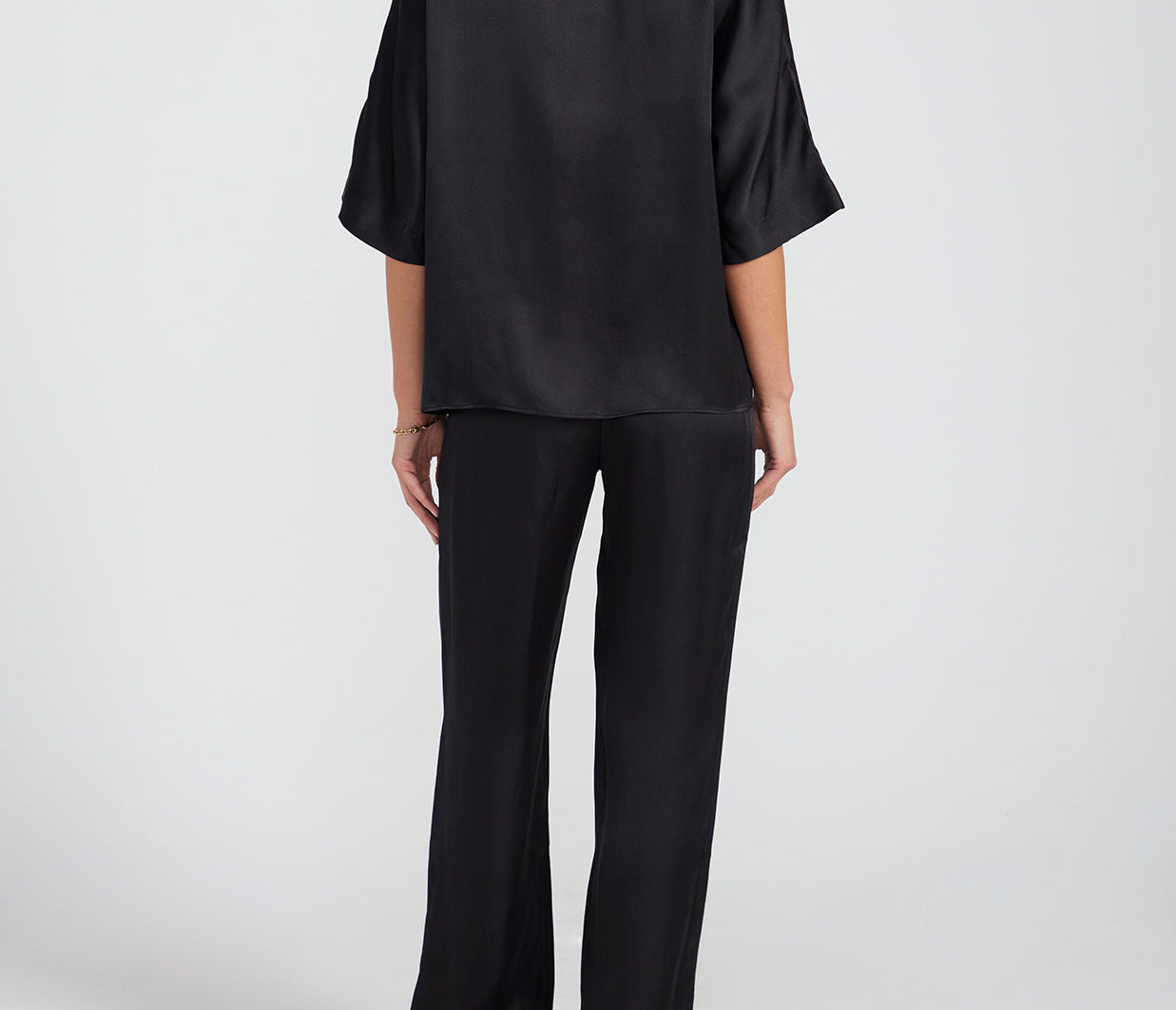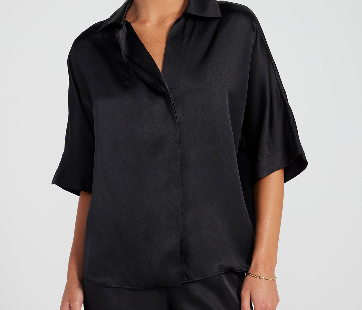 ANINE BING presents a contemporary interpretation of a timeless essential with the Julia shirt. Arriving in a sleek black colour way, this shirt features wide sleeves and concealed fastening for a modern touch. Pair with the Co-ordinating Aden pant and a point heel for a chic and polished look.