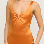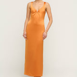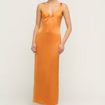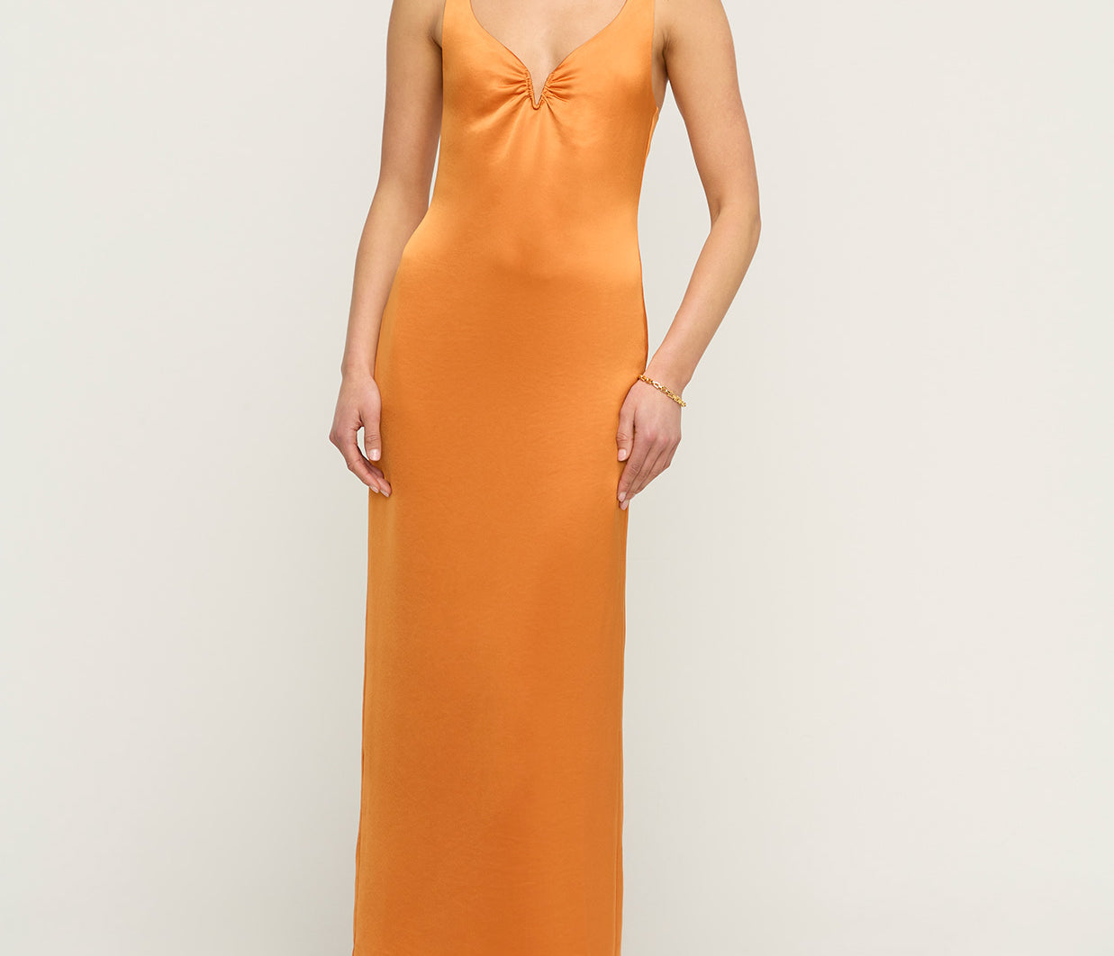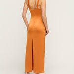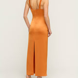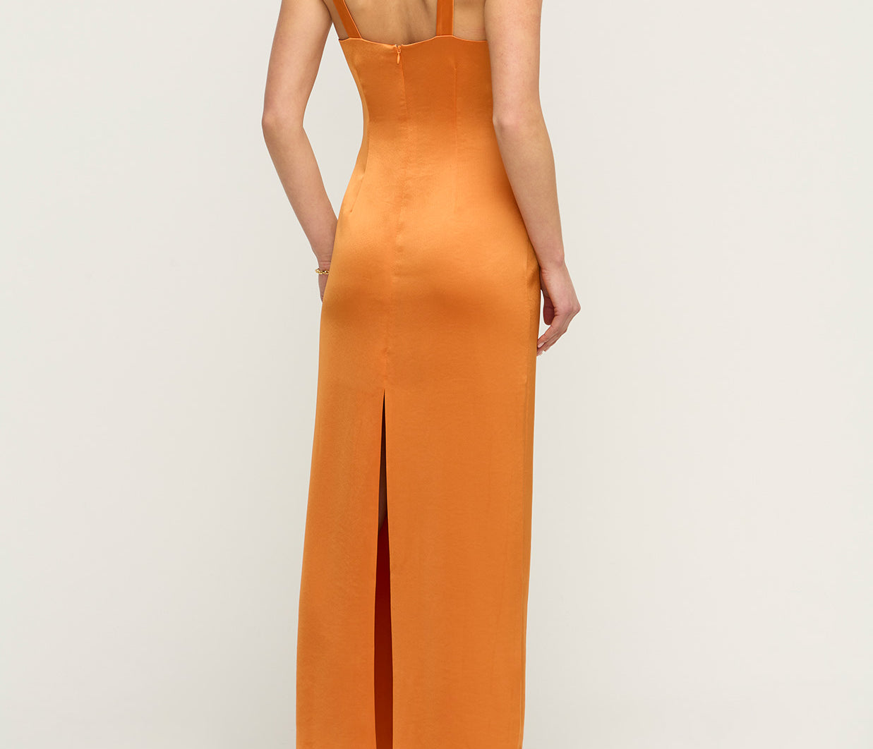 A luminous slip dress crafted from a fluid Japanese Satin. Liliana features a sleek silhouette that boasts a sweetheart neckline, defined by a gathered v wire insert. Finished with a back split allowing you to move with ease, Liliana pairs back perfectly with gold accessories.