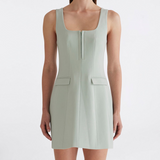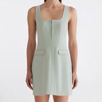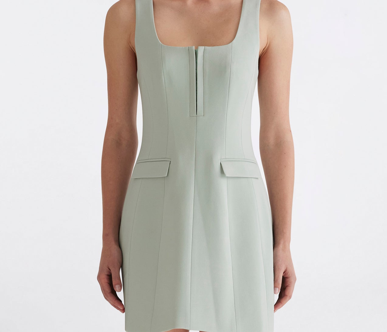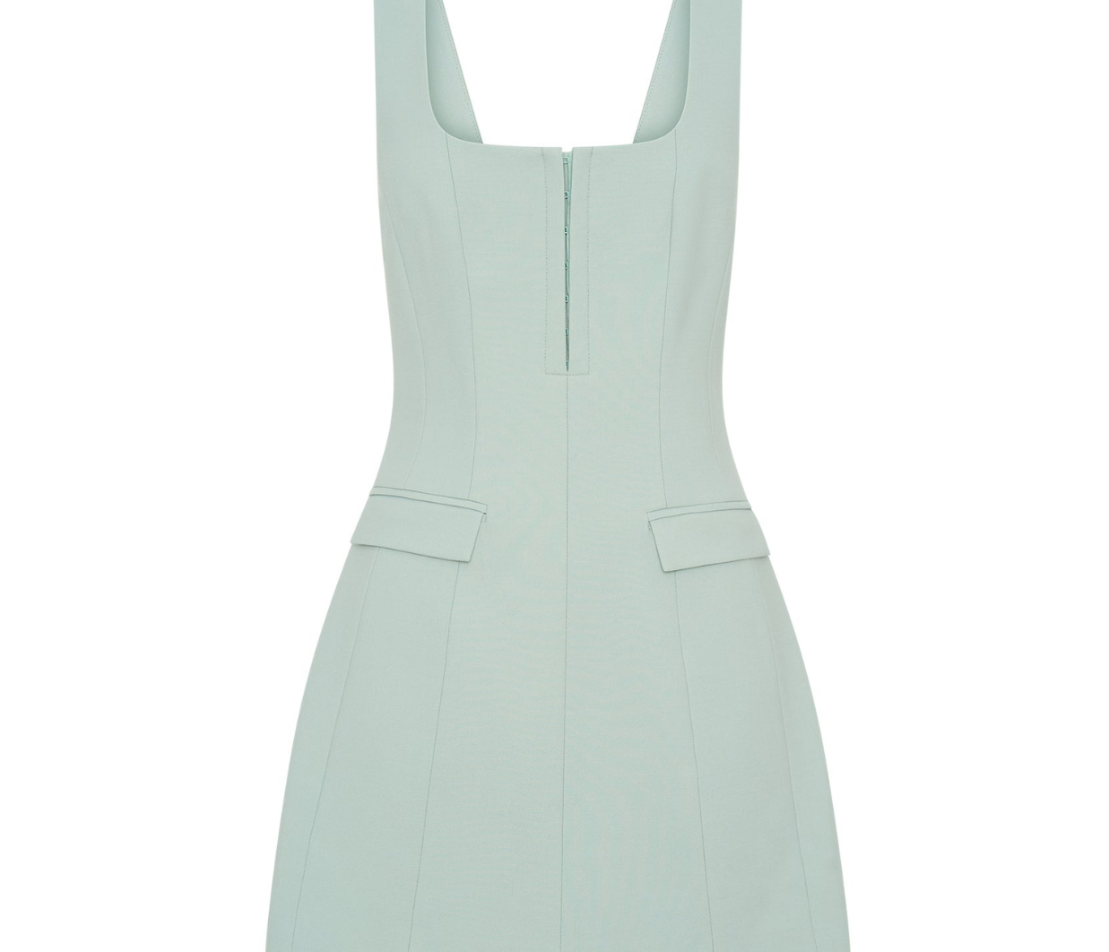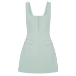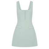 Introducing the Maeve Dress in Acqua a perfect Summer tailored mini dress. Cut in a seasonless, lightweight wool blend and fully lined for ease of wear. The Maeve Dress is is detailed with a hook and eye clasp front closure and two flap pockets. Style with your favourite heels for an evening event.