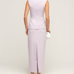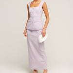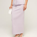 This versatile garment embodies the perfect fusion of sophistication and practicality, offering a tailored fit that effortlessly transitions from daytime chic to nighttime allure. Designed to sit on the high waist and falls into a midi length hem, it pairs back perfectly with the Antonella Top in Lilac for a spring ensemble.