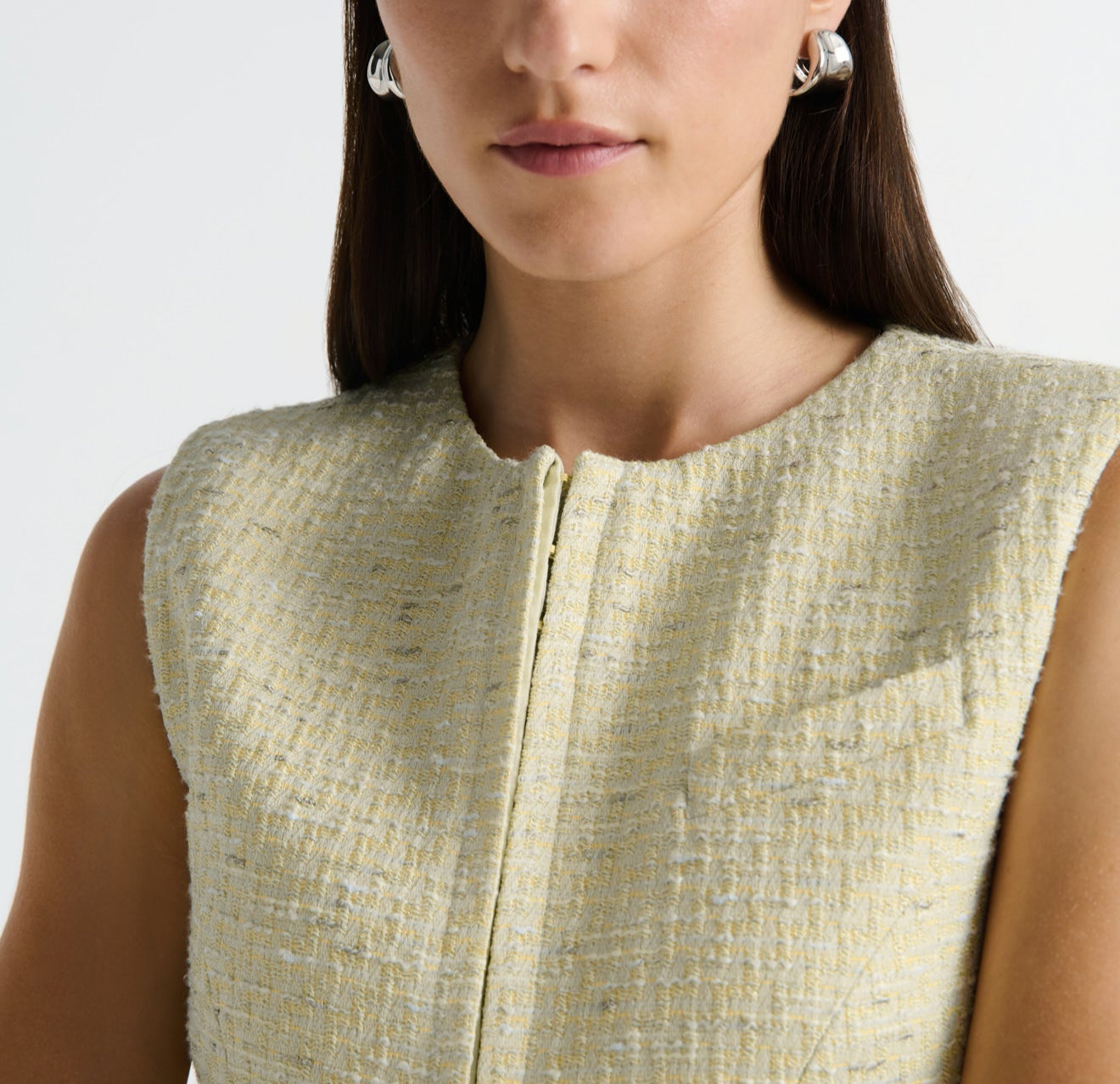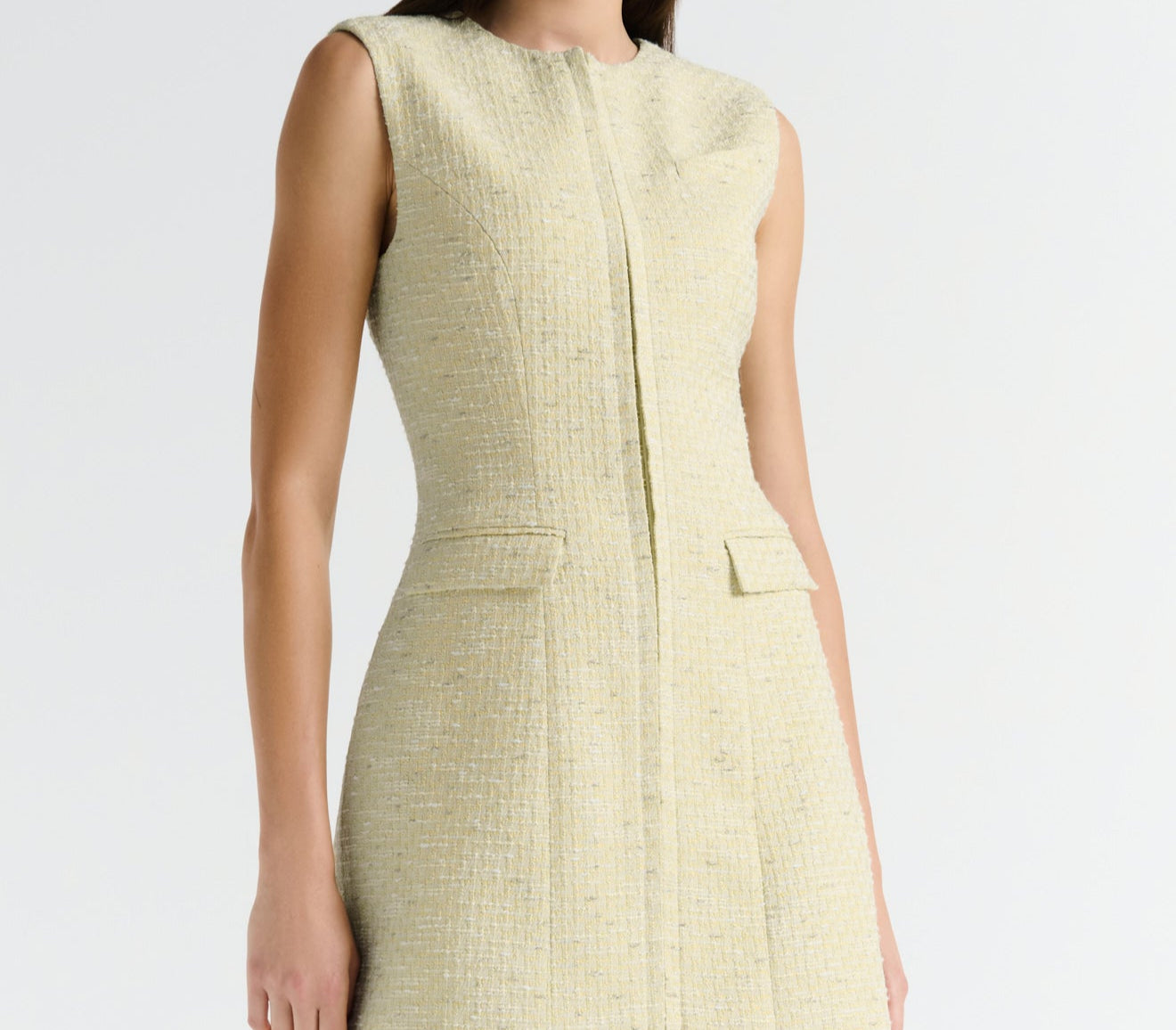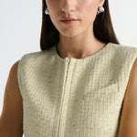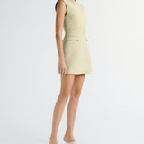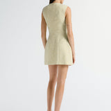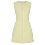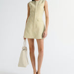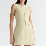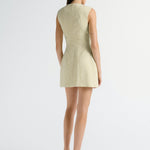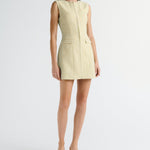 Introducing the Nola Dress in Verna mini tailored dress. Designed in a custom hand-loomed textured fabrication, featuring a high neckline with princess seams to create a soft hourglass silhouette. A functional hook and bar closure sits at the center front for multiple styling options. Completed with an invisible zipper at the center back.