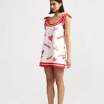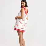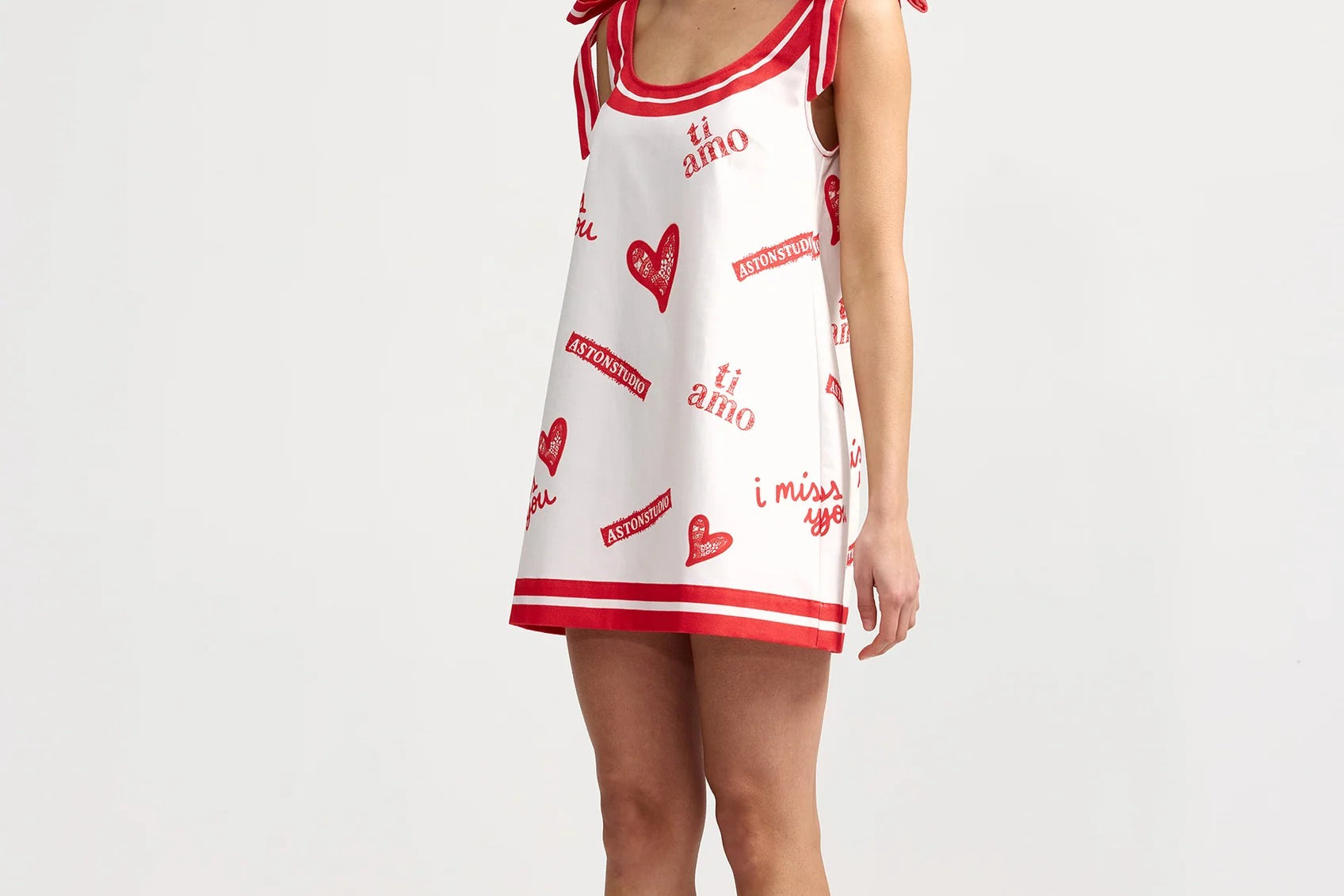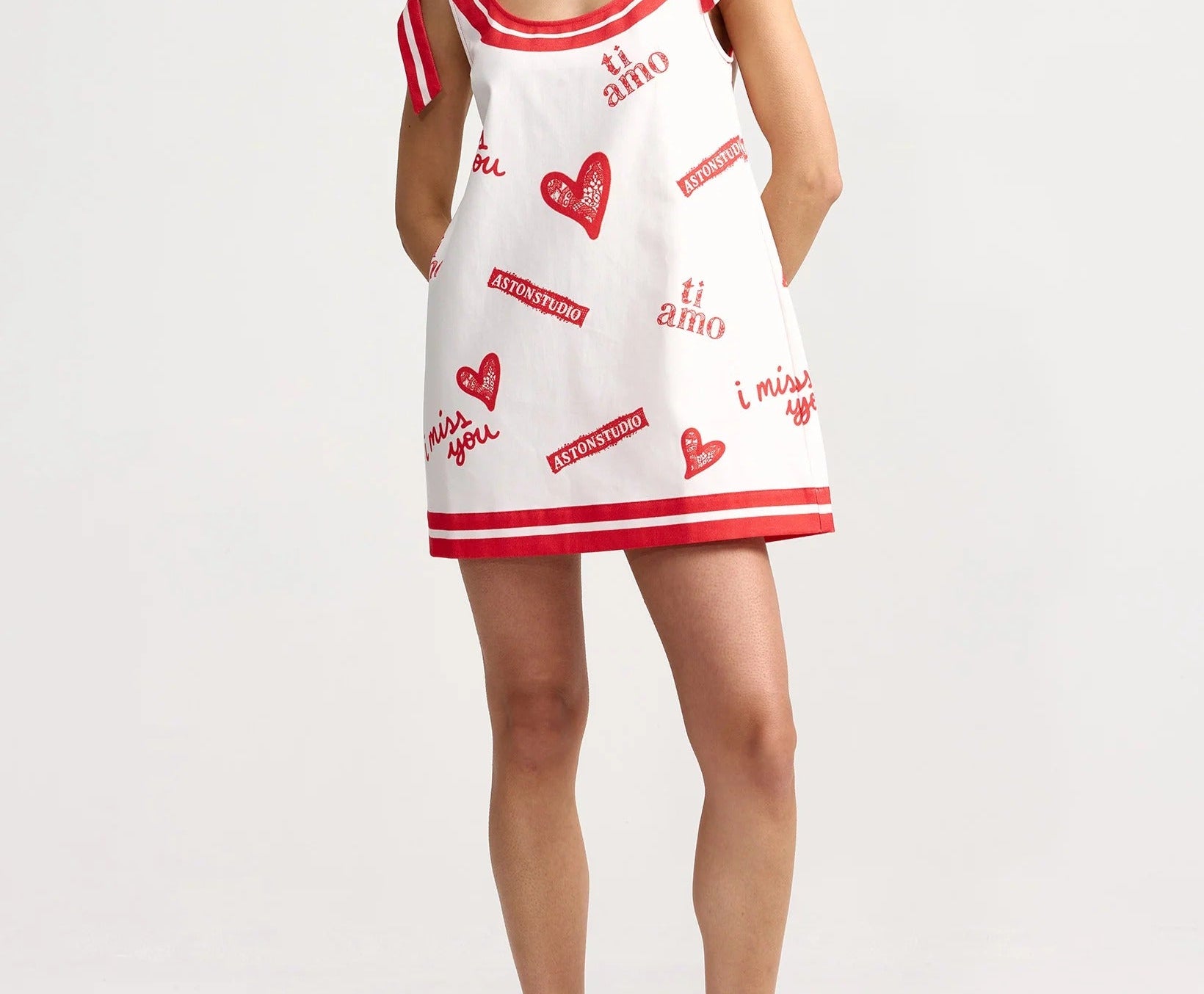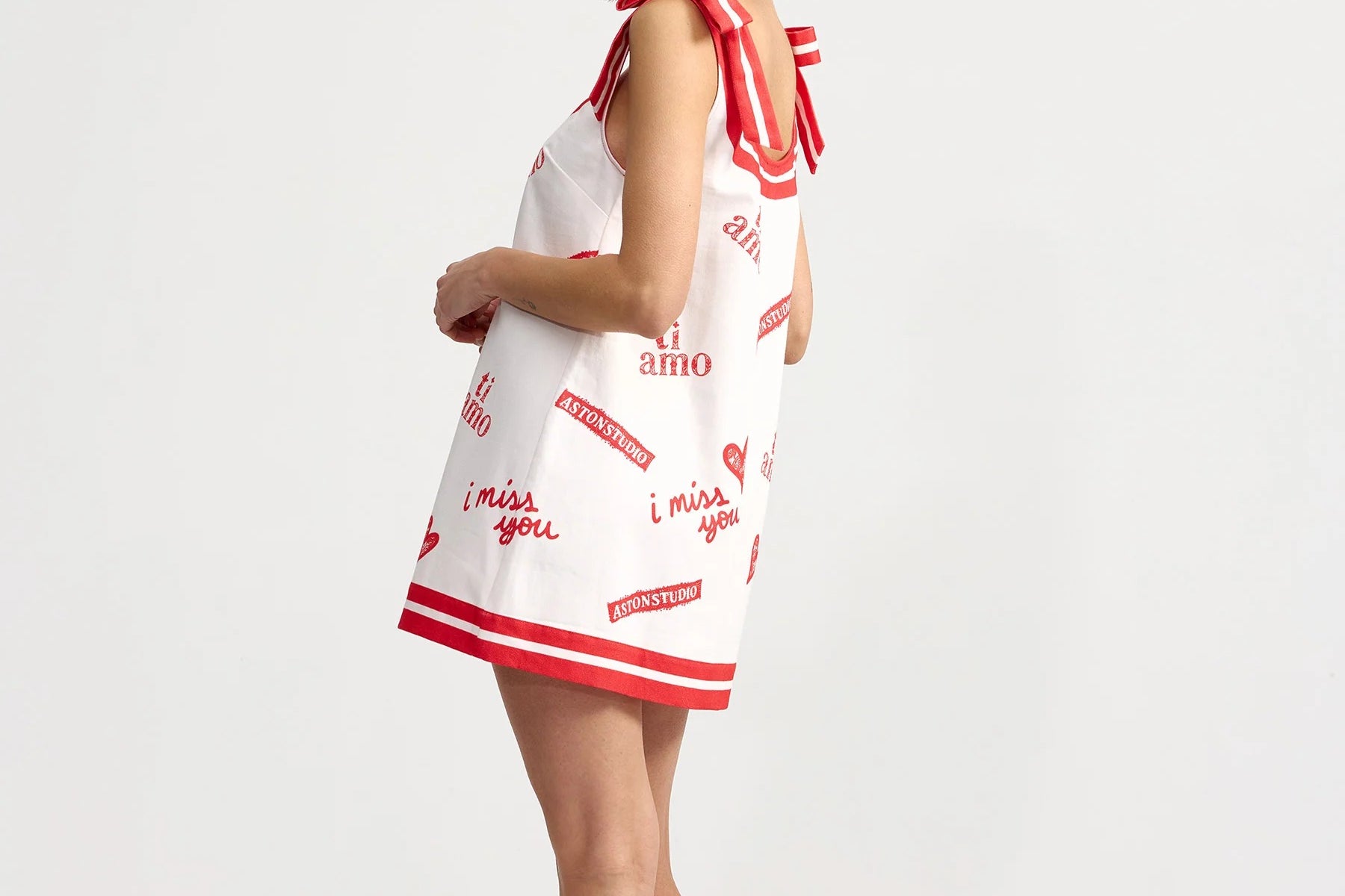 Introducing Aston Studio's Quinn Denim Dress in Ruby Antique, a mini-dress silhouette with Aston Studio's exclusive print. Designed in an A-line silhouette, with a scooped neckline and tie-shoulder straps, it drapes into a subtle flare. Perfect resort wear for day-to-night dressing.