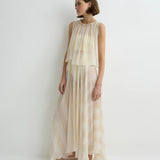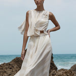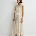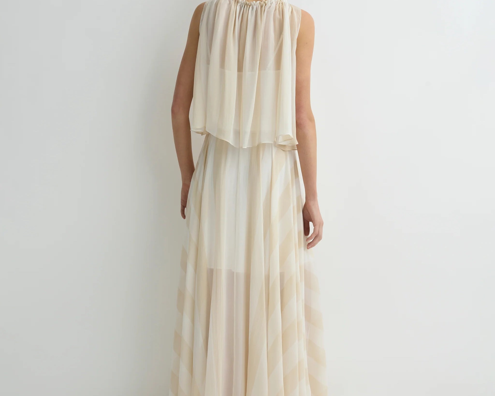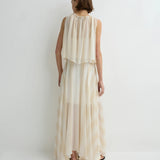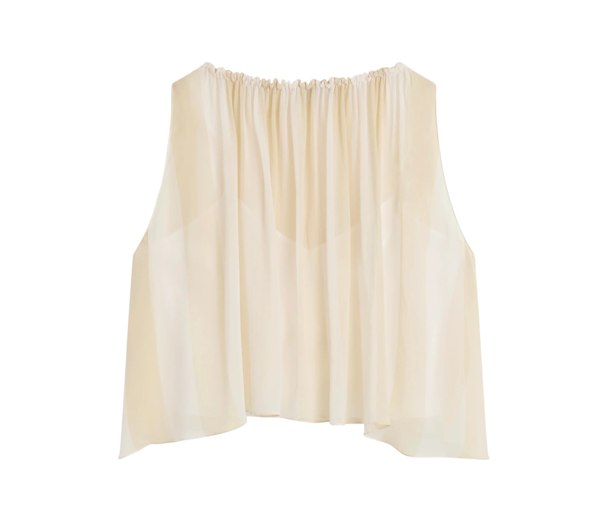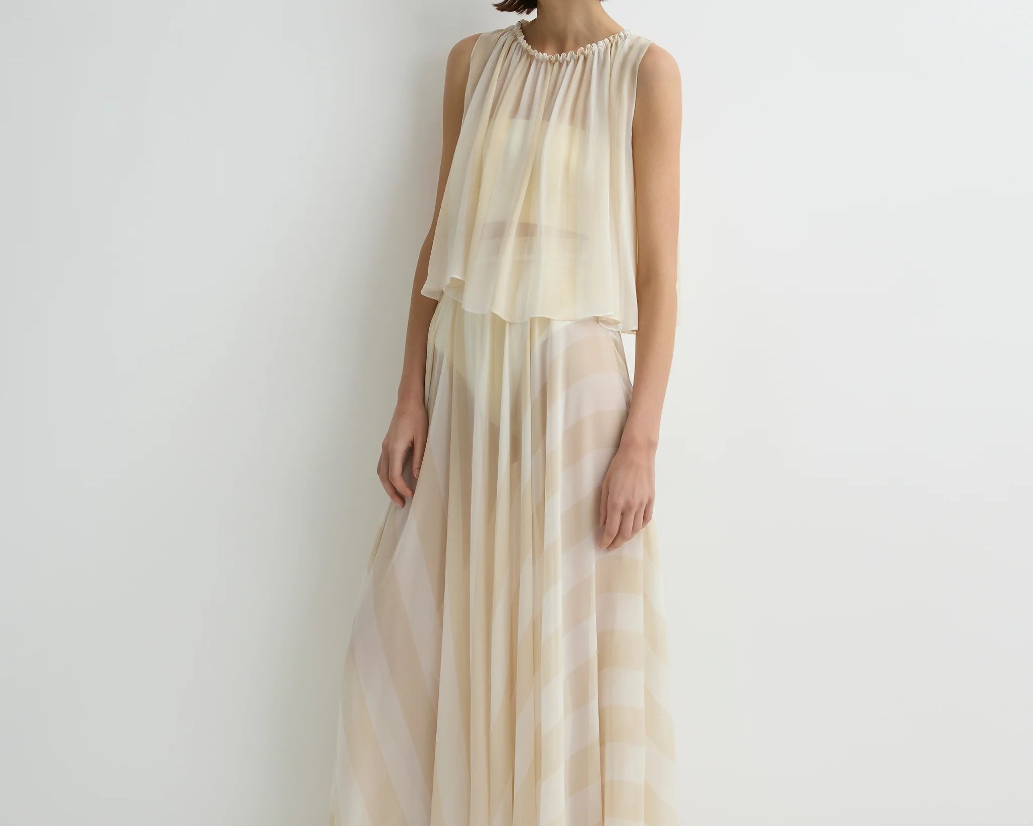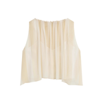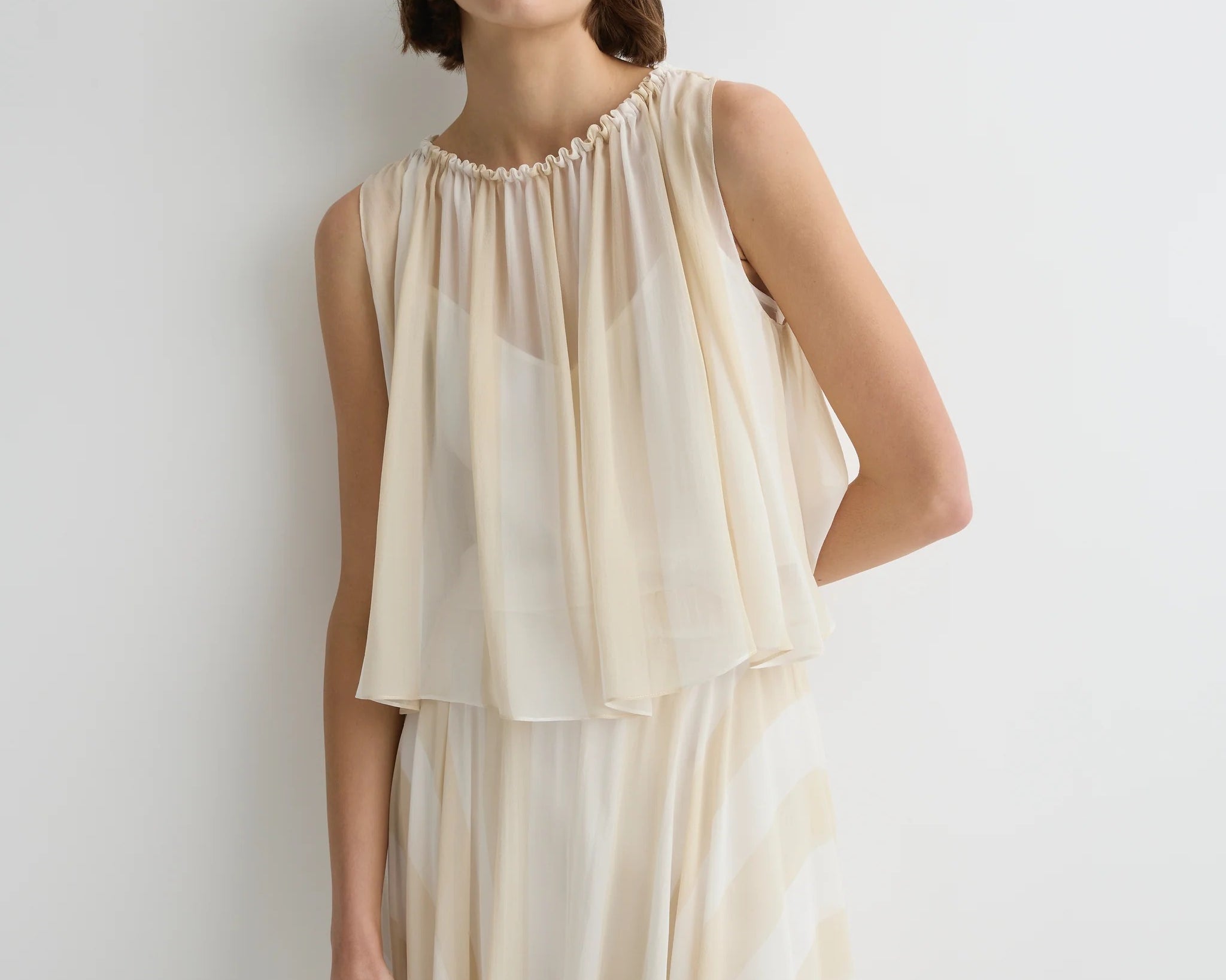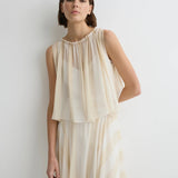 Light and ethereal, the limited-edition Capri Silk Gathered Top in ecru stripe features an elasticised neckline that allows soft volume and a relaxed draped hem. Layered over a slip, it offers effortless elegance and warm weather ease.