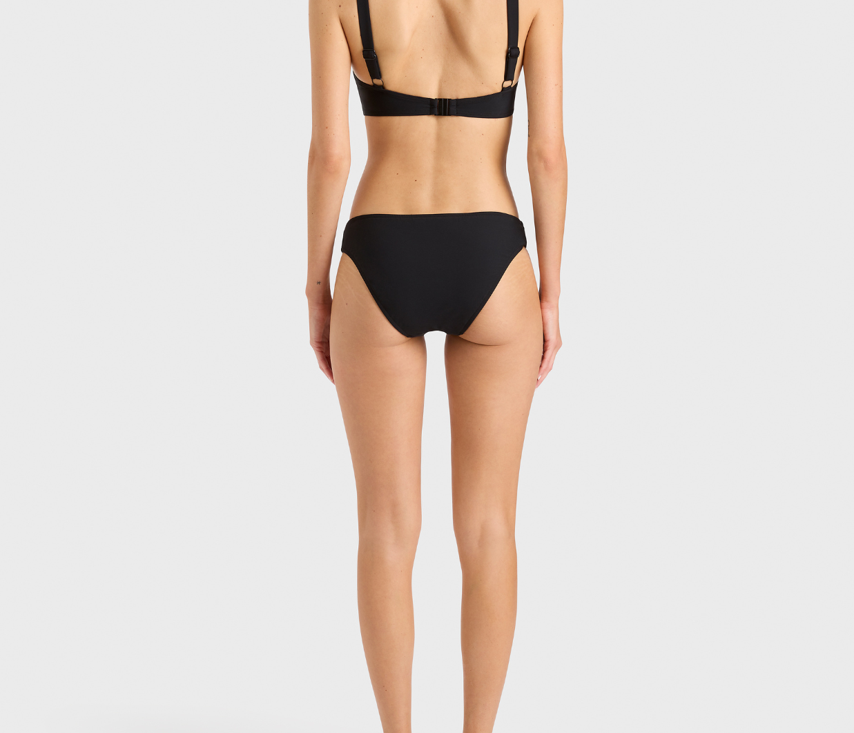 Introducing Bondi Born's Clio Bikini Top in Black, a bikini swimwear top in a black hue. The Clio top features a modern square neckline with a V-wire detail at the centre front, crafted from premium Italian-milled Sculpteur® fabric for a perfect fit. Designed with wide, comfortable shoulder straps and invisible under-bust support, Clio is ideal for larger busts, best suiting cup sizes B to DD.