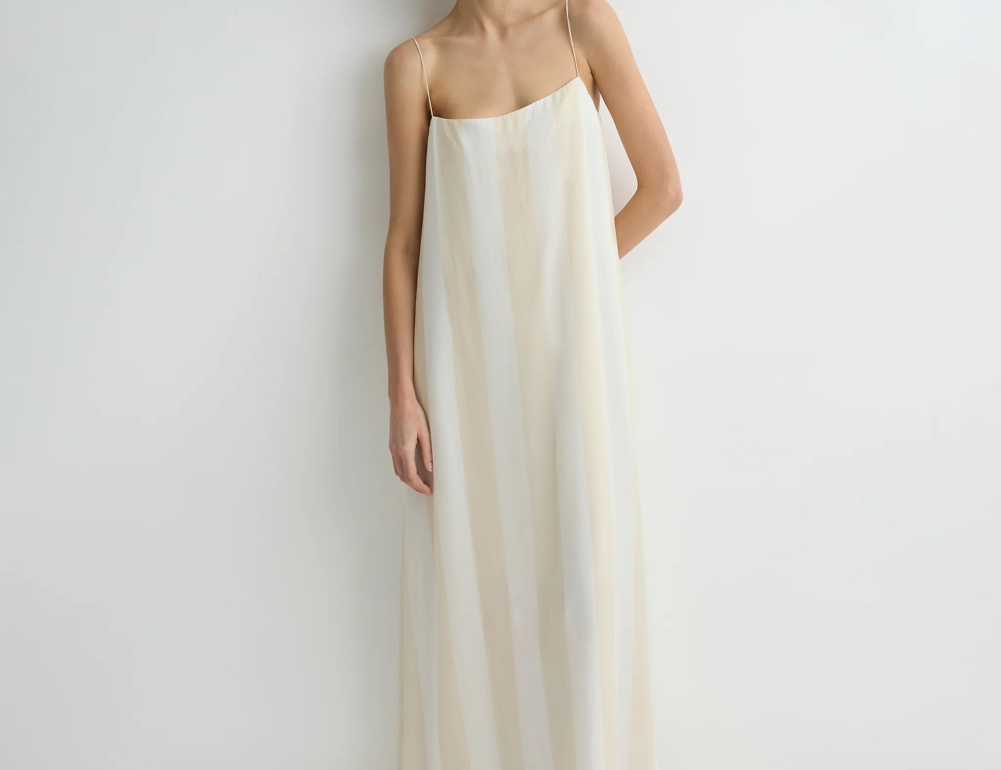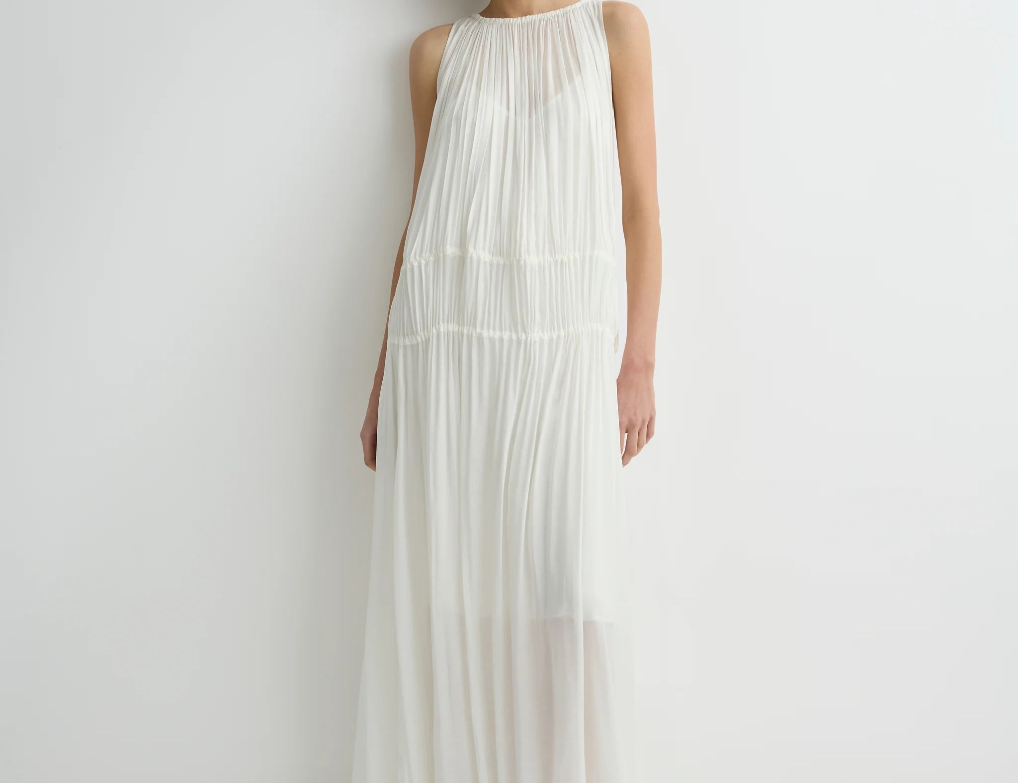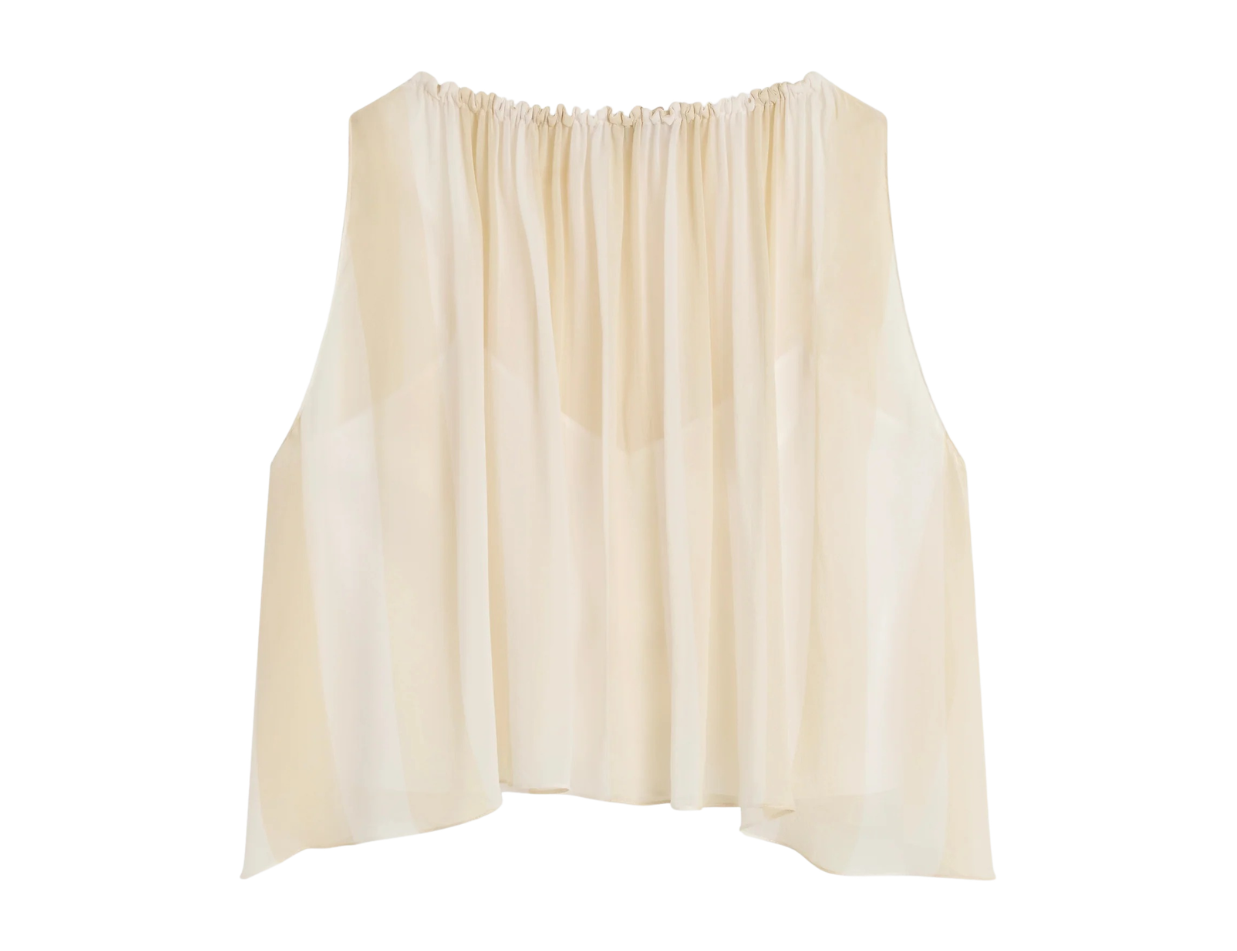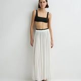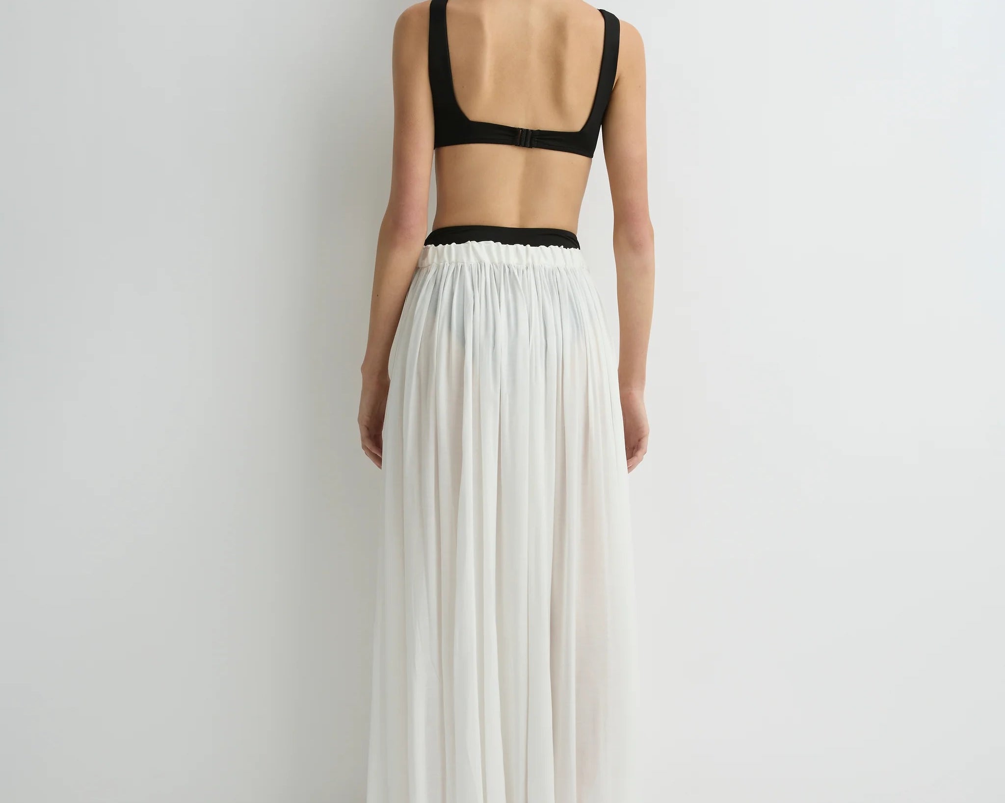 The limited-edition Cremona Balloon Skirt in white offers a modern, voluminous full-length silhouette cut from sheer European voile. Its elastic waist and hem create gentle architectural shape while maintaining effortless movement. An elevated warm-weather piece that feels both refined and weightless.