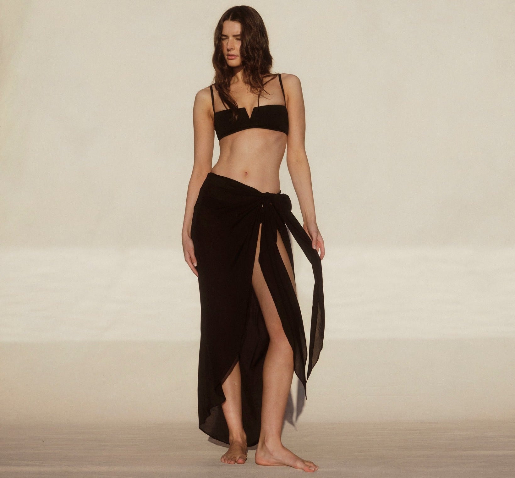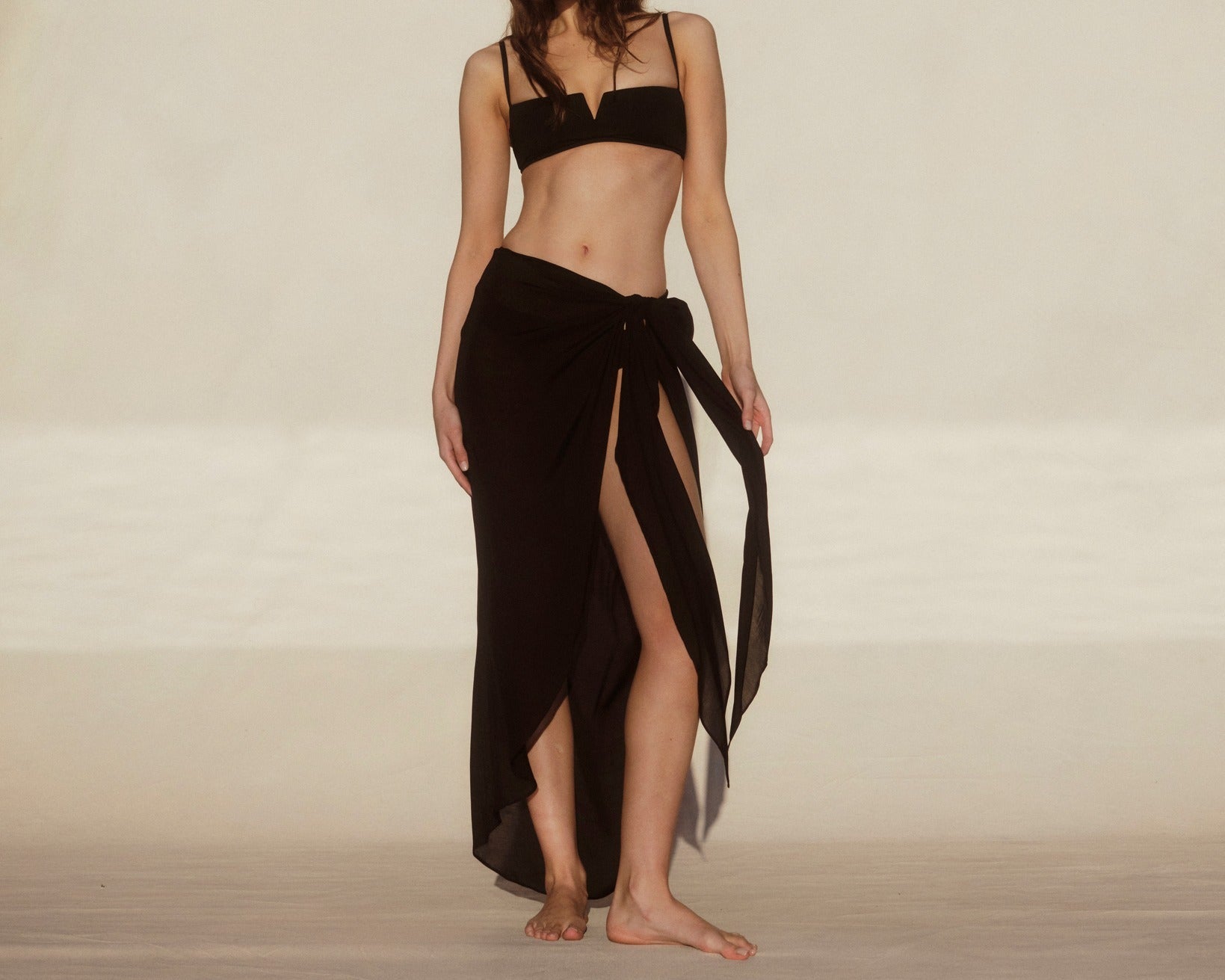 Cremona Tie Front Sarong in Black