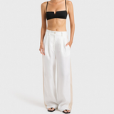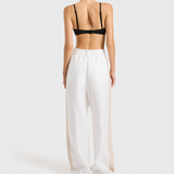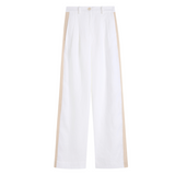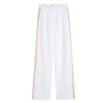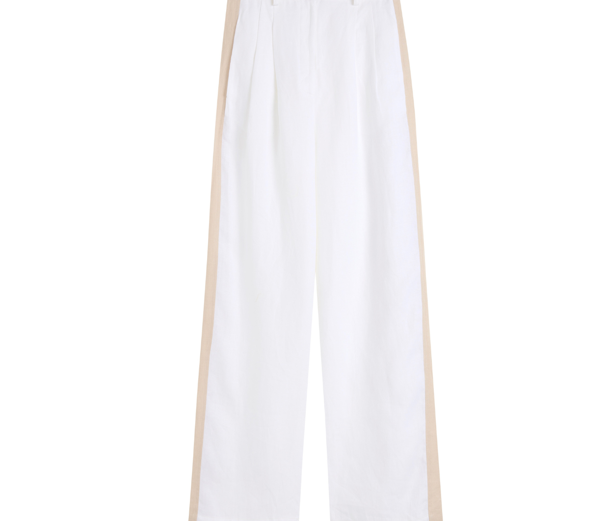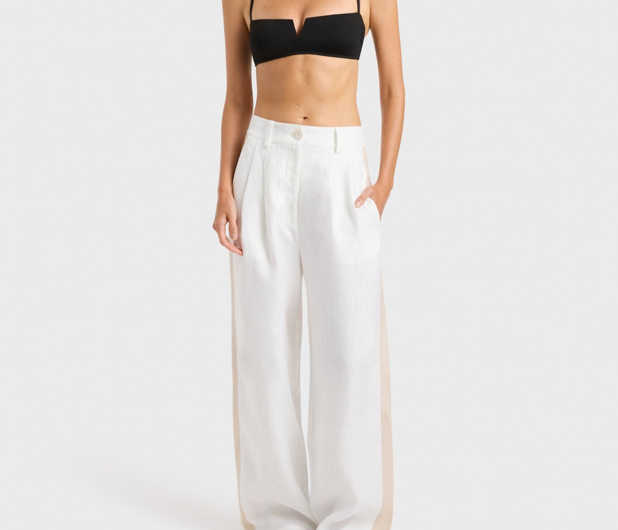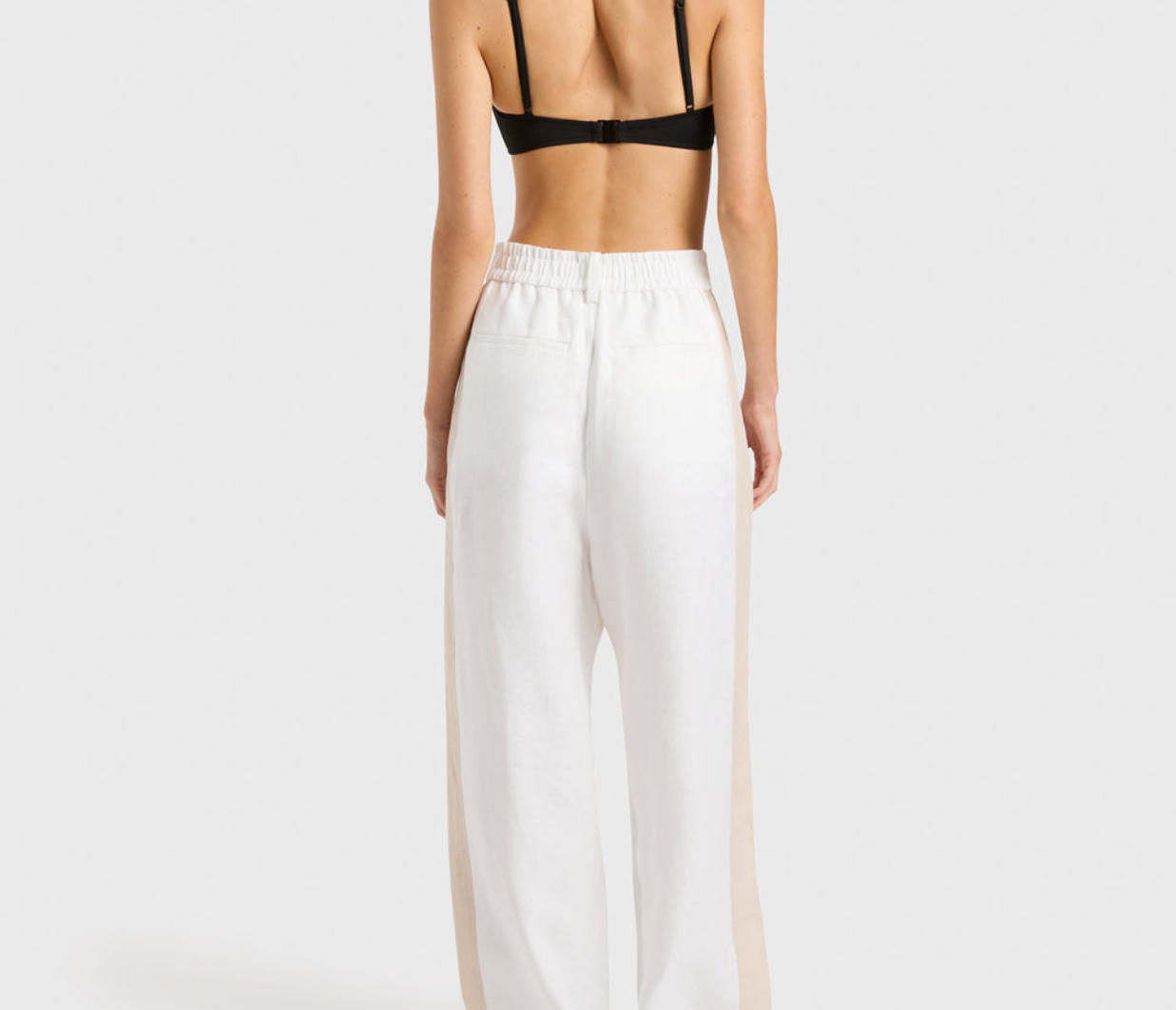 The Delphi Two Tone Tailored Pant in White and Sand is crafted from luxurious 100% organic linen, milled by a Masters of Linen™ using European Flax. Featuring a chic contrast panel in Sand herringbone linen along the sides of each leg, these pants combine style and functionality with deep pockets, belt loops, and an elasticated section on the back waistband for an optimised fit.