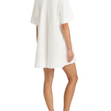 Introducing Bondi Born's Kyoto Short Sleeve Mini Dress in White, a mini shirt dress silhouette in a white hue. Designed from Japanese dry cotton, the Kyoto Mini Dress is a swing-style silhouette that drapes beautifully for breathability and movement, finished with a collared V neckline and crisp short sleeves. Subtle side pockets add practicality, making this a polished yet effortless piece you’ll return to for summers to come.