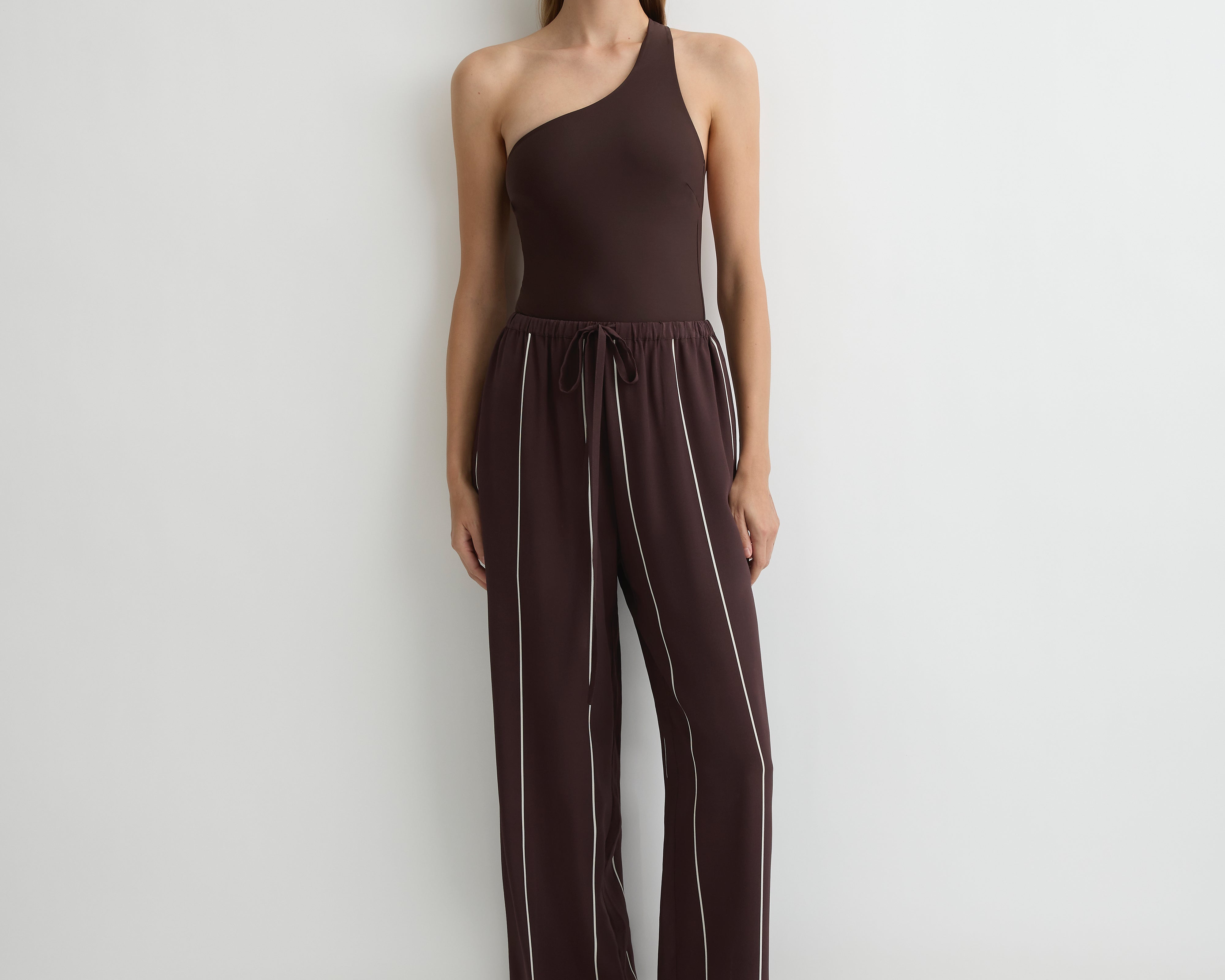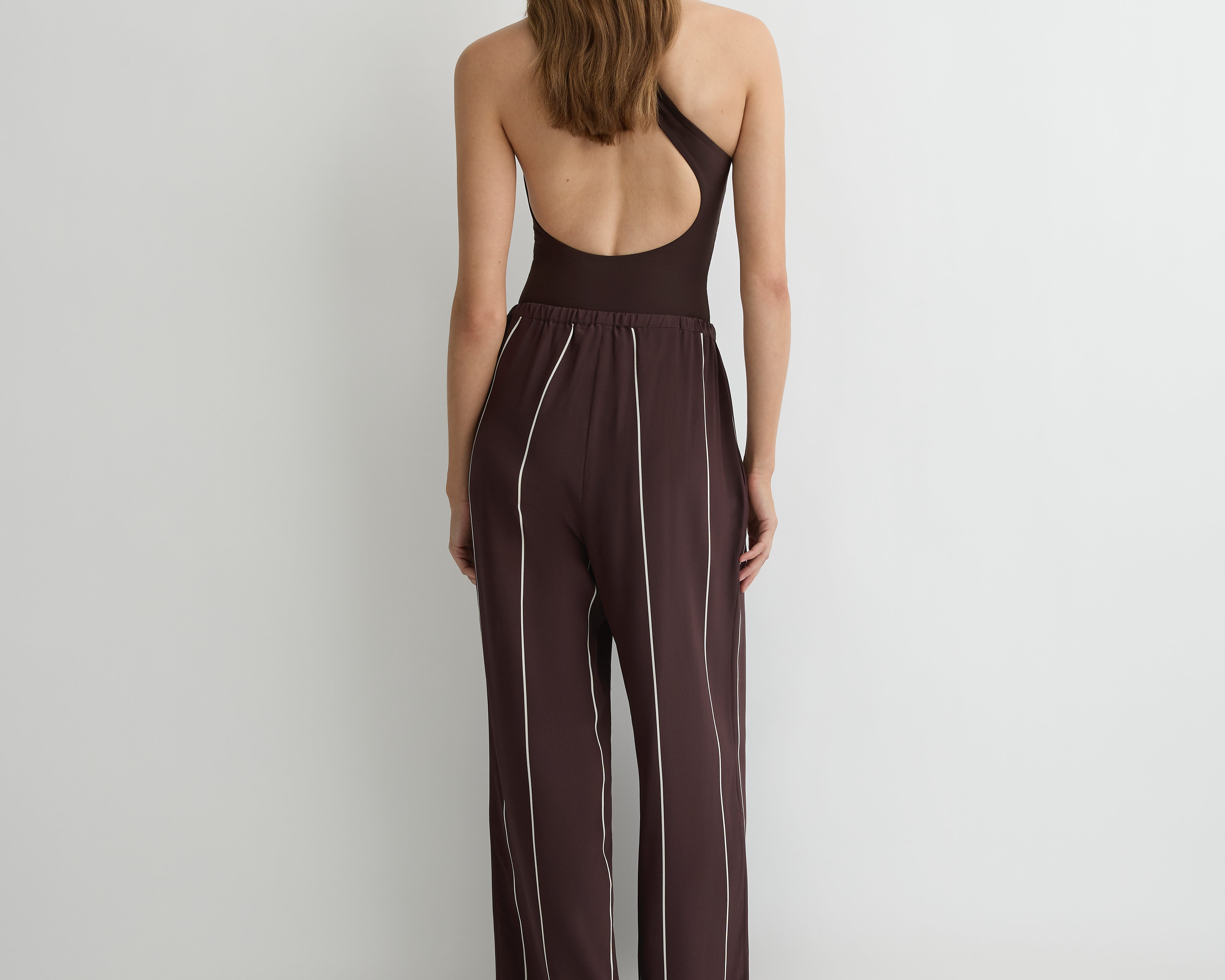 Introducing Bondi Born's Orta Silk Pant in Mocha Stripe, a relaxed straight-leg pant silhouette in mocha stripe. Designed from crisp Japanese dry cotton poplin in a straight-leg silhouette and cut to full length, the Orta Pant features an elasticated waistband with a self-tie detail and practical side and back pockets. Relaxed yet refined, it pairs effortlessly with our matching Orta Silk Tie Neck Top for a chic summer set.