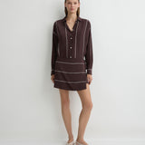 Orta Silk Wrap Mini Dress in Mocha Stripe