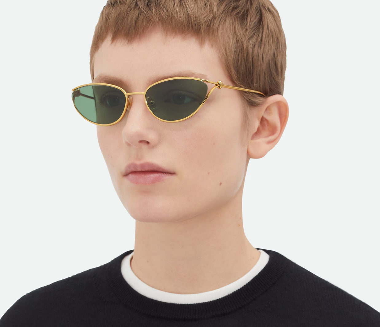 Bottega Veneta Cat Eye Sunglasses in Gold Green