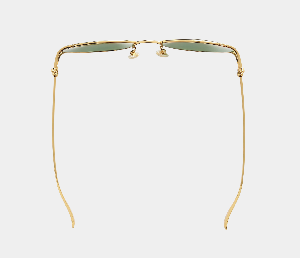 Introducing the Bottega Veneta Cat-Eye Sunglasses in Gold Green. Crafted in a striking gold frame finish with green-tinted lenses, this bold full-rim cat-eye silhouette is made from lightweight metal, offering a sleek and modern twist on a timeless eyewear design.