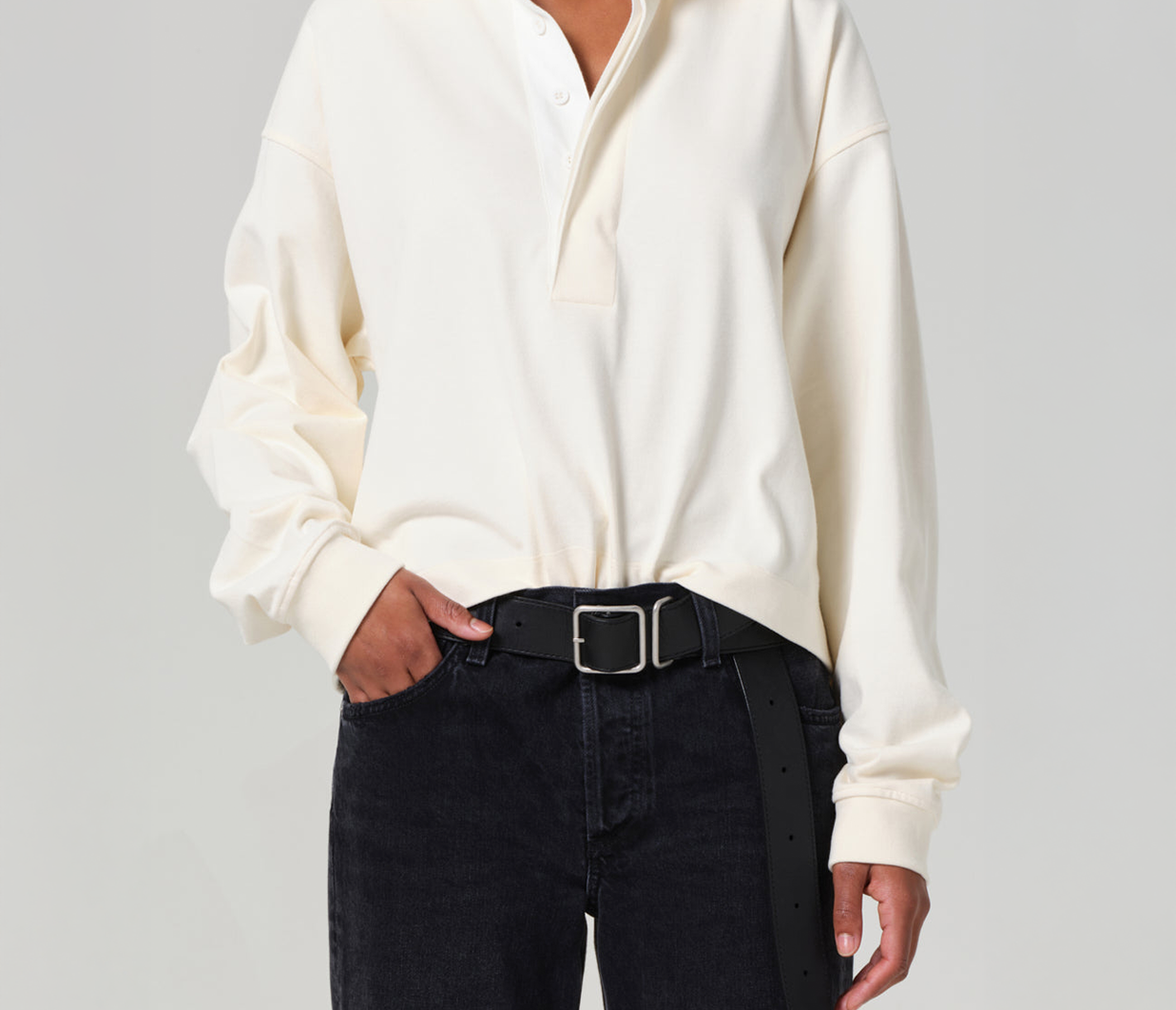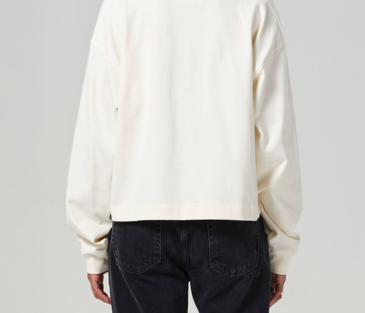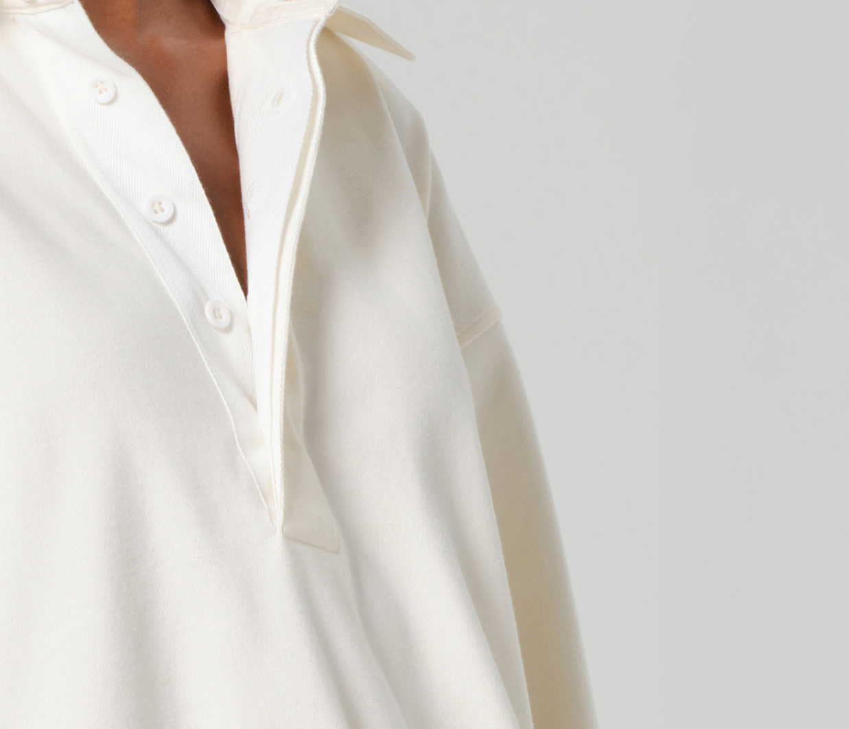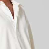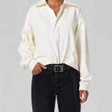 Introducing Aris Rugby Shirt in Pashmina a refined take on a classic silhouette, crafted from soft, breathable 100% cotton for all-day comfort. Designed with a point collar, button placket, and dropped shoulders, it drapes effortlessly in a relaxed fit that falls to the hip. Long sleeves make it a versatile layering piece, perfect for effortless styling season after season.
