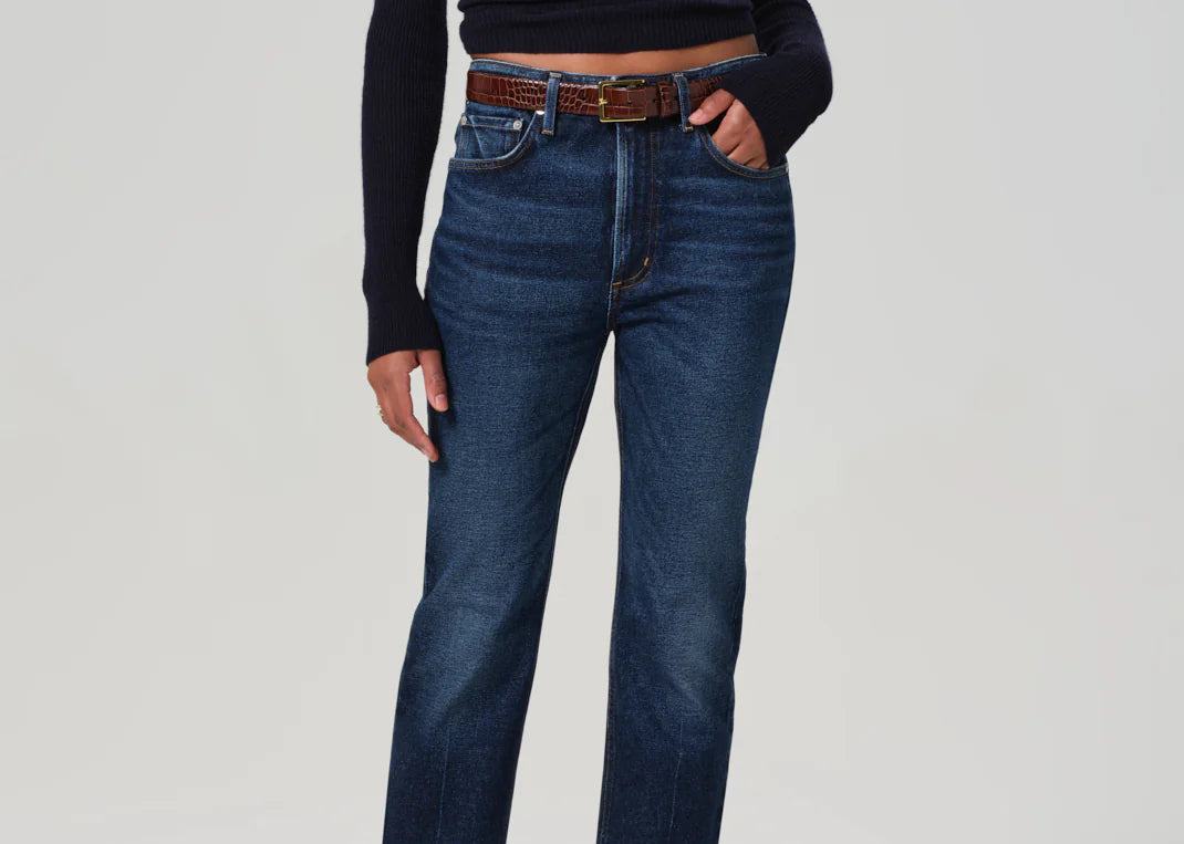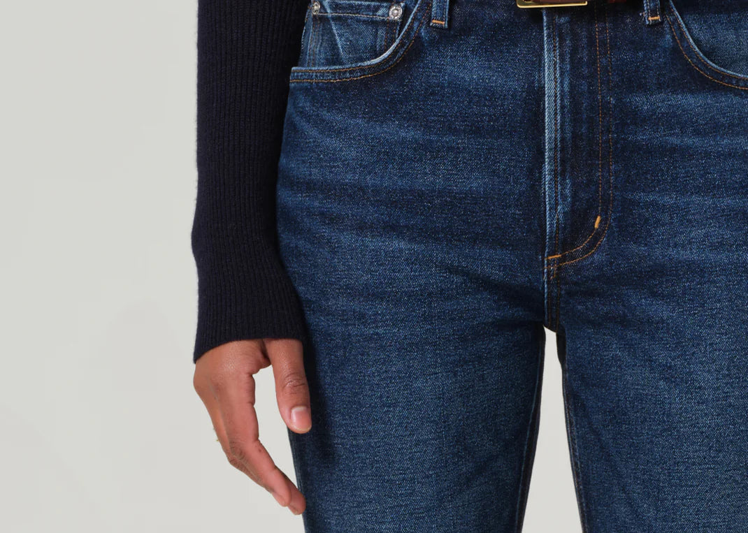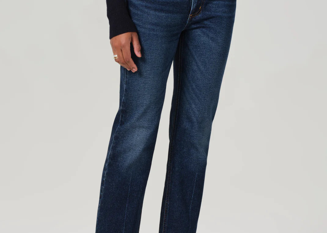 Introducing Citizens of Humanity's Zurie Straight Jean in Sutherland vintage-inspired denim. Designed with a flattering high rise, it features a relaxed, straight-leg silhouette and an elongated inseam for a lengthened look. Crafted from rigid, non-stretch denim, it offers structure and an authentic, lived-in feel that only gets better with time. The SUtherland wash adds depth with its soft, worn-in indigo tone—making it the perfect pair to elevate your everyday denim rotation.