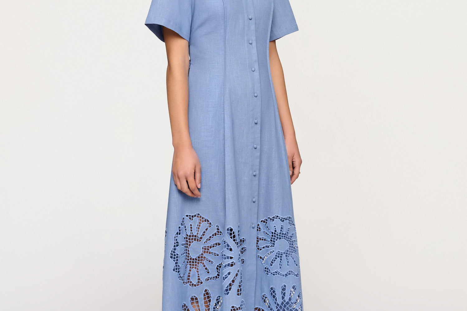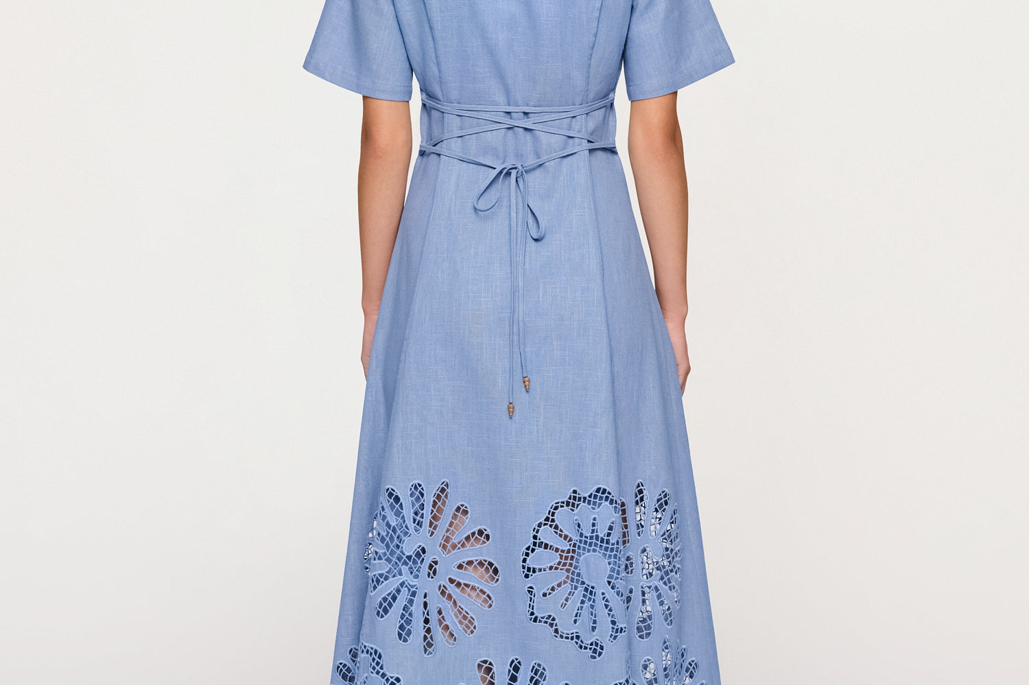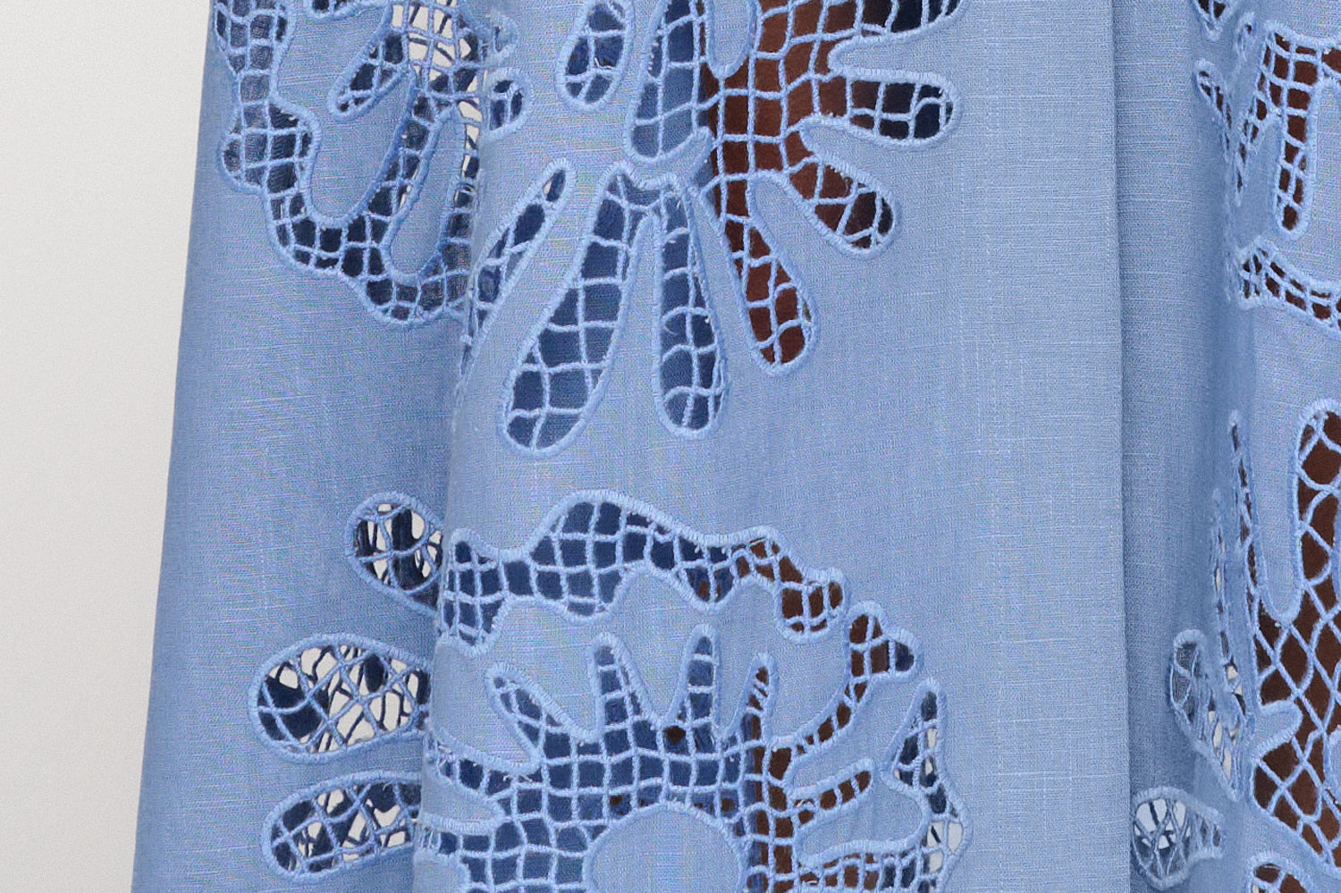 - Embroidered flowers in bespoke hand-drawn design with cutwork