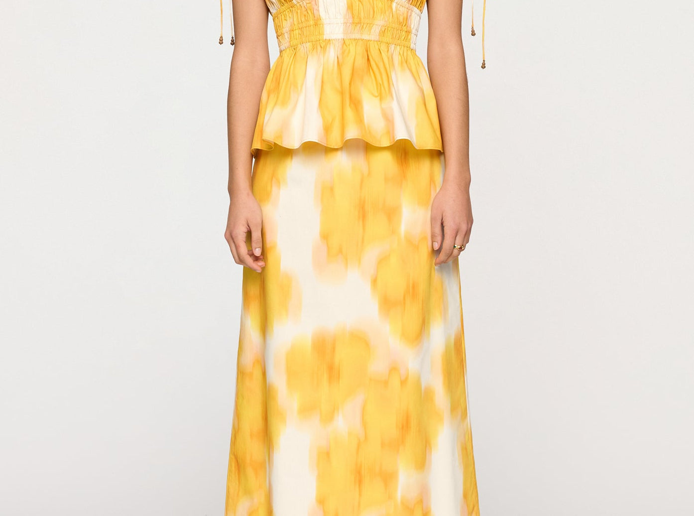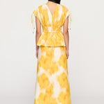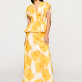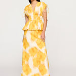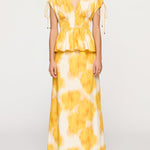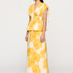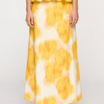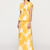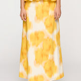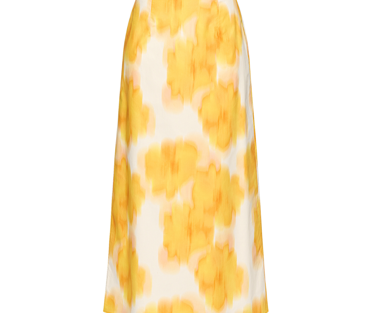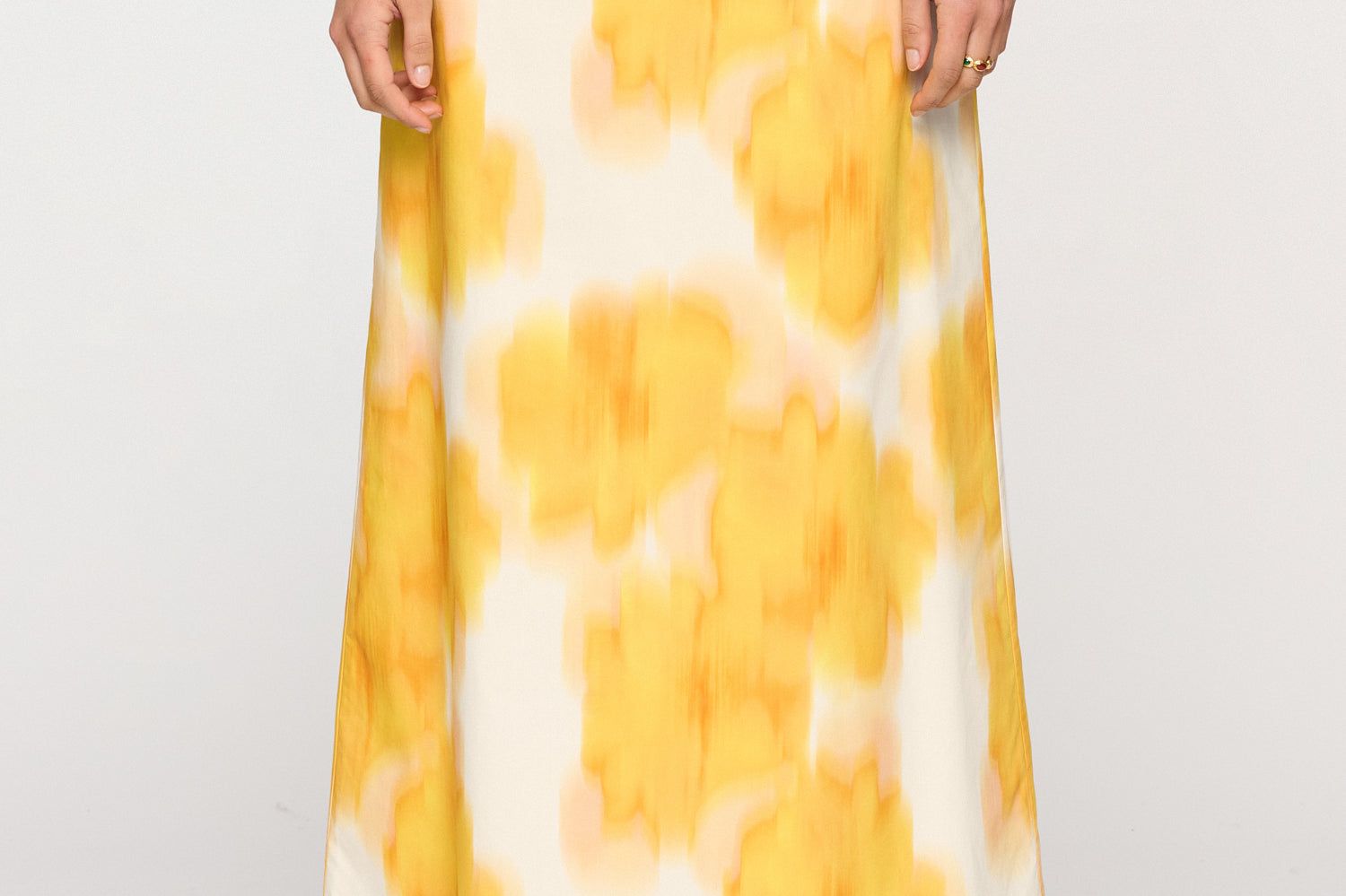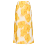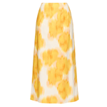 Introducing Clea's Jasmine Skirt in Floralis Butter, a midi skirt silhouette in a floralis yellow butt print. The Jasmine Skirt is designed in an A-line silhouette crafted in crisp, polished cotton with a bespoke print; the fabric brings both visual clarity and lightness to the form. A concealed invisible zipper at the back ensures a seamless finish.