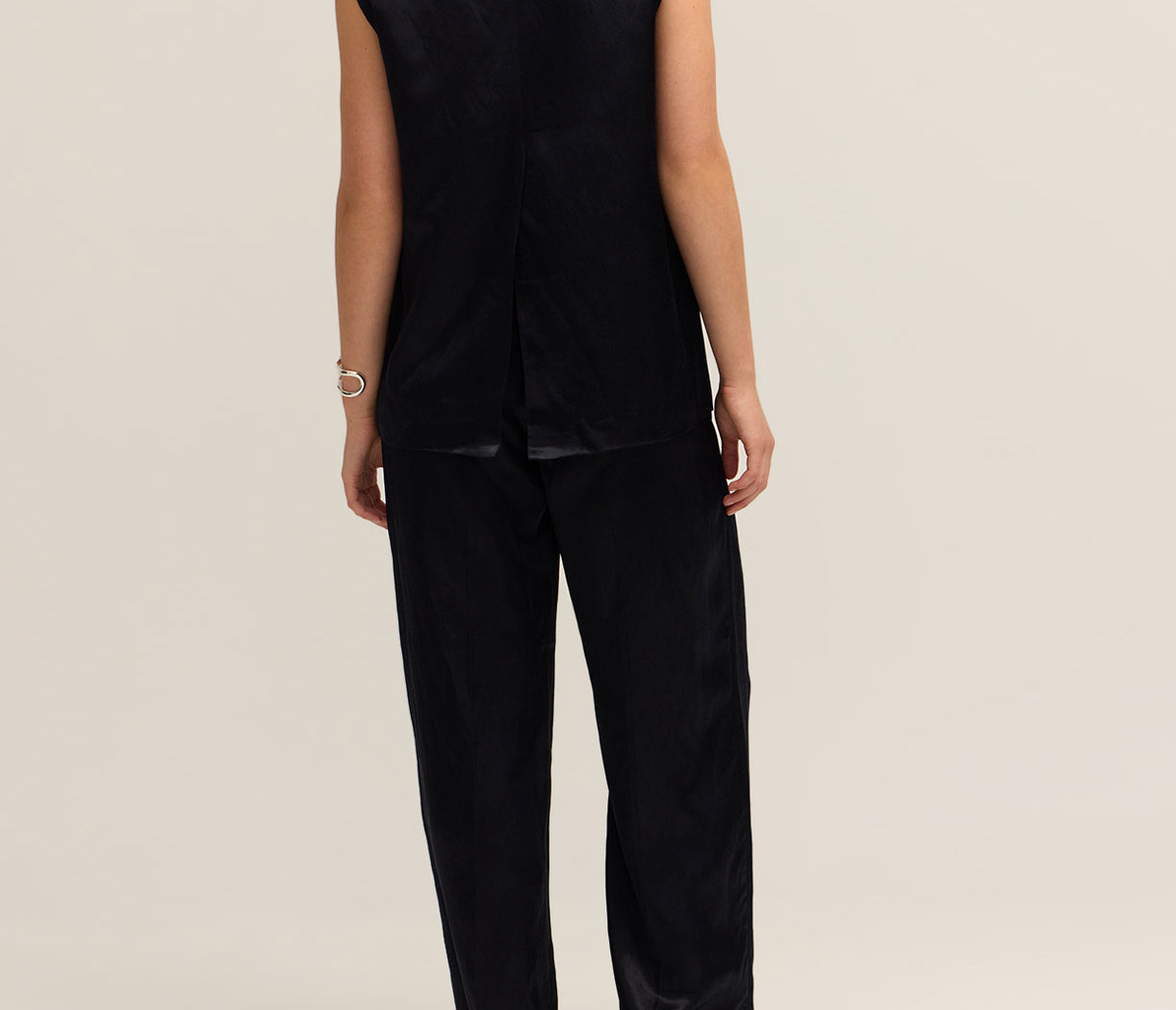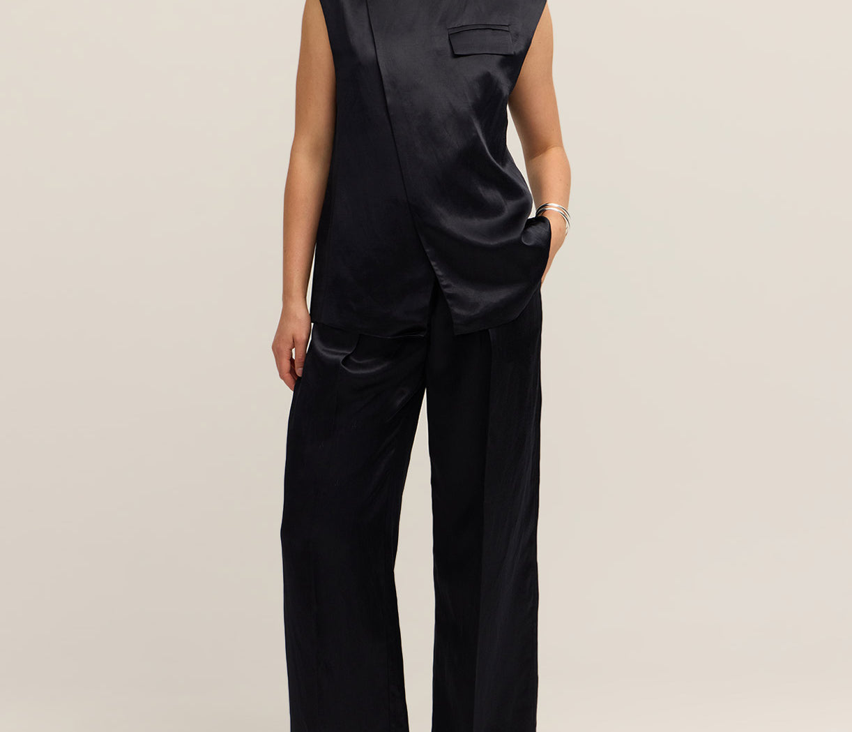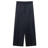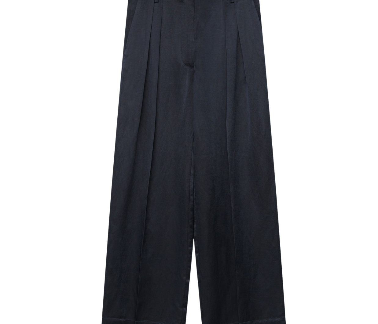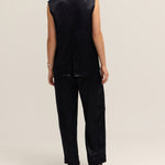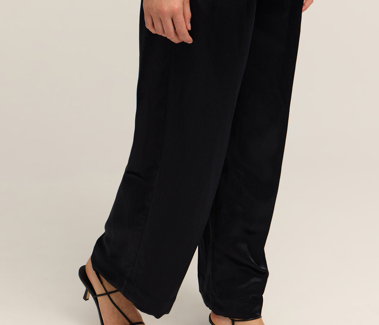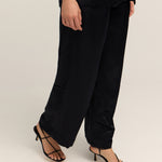 Introducing Enzo Pant in Black. Designed with a flattering high-rise waist and a chic wide-leg silhouette, these trousers offer both style and comfort. Thoughtful pleats add subtle structure, while the zip fly with hook closure ensures a seamless fit. Functional details like side pockets and a single patch pocket at the back combine practicality with sophistication.
