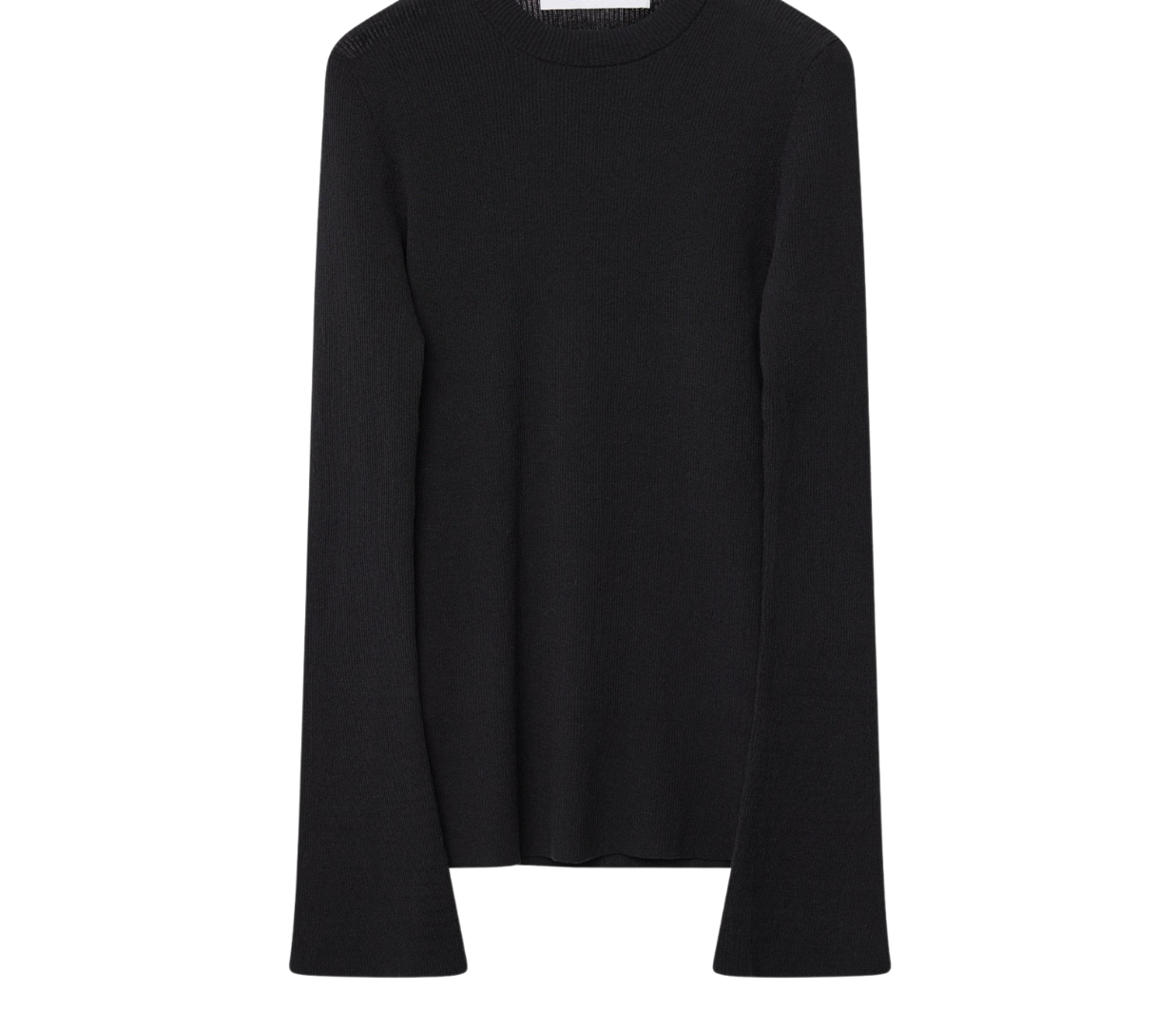 Introducing the Teran Cotton Sweater in Black, designed for a sleek, fitted look with a ribbed texture that adds subtle dimension. Featuring a classic crew neck, it offers both comfort and style, making it a versatile wardrobe staple.