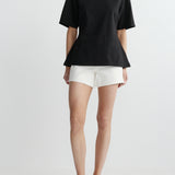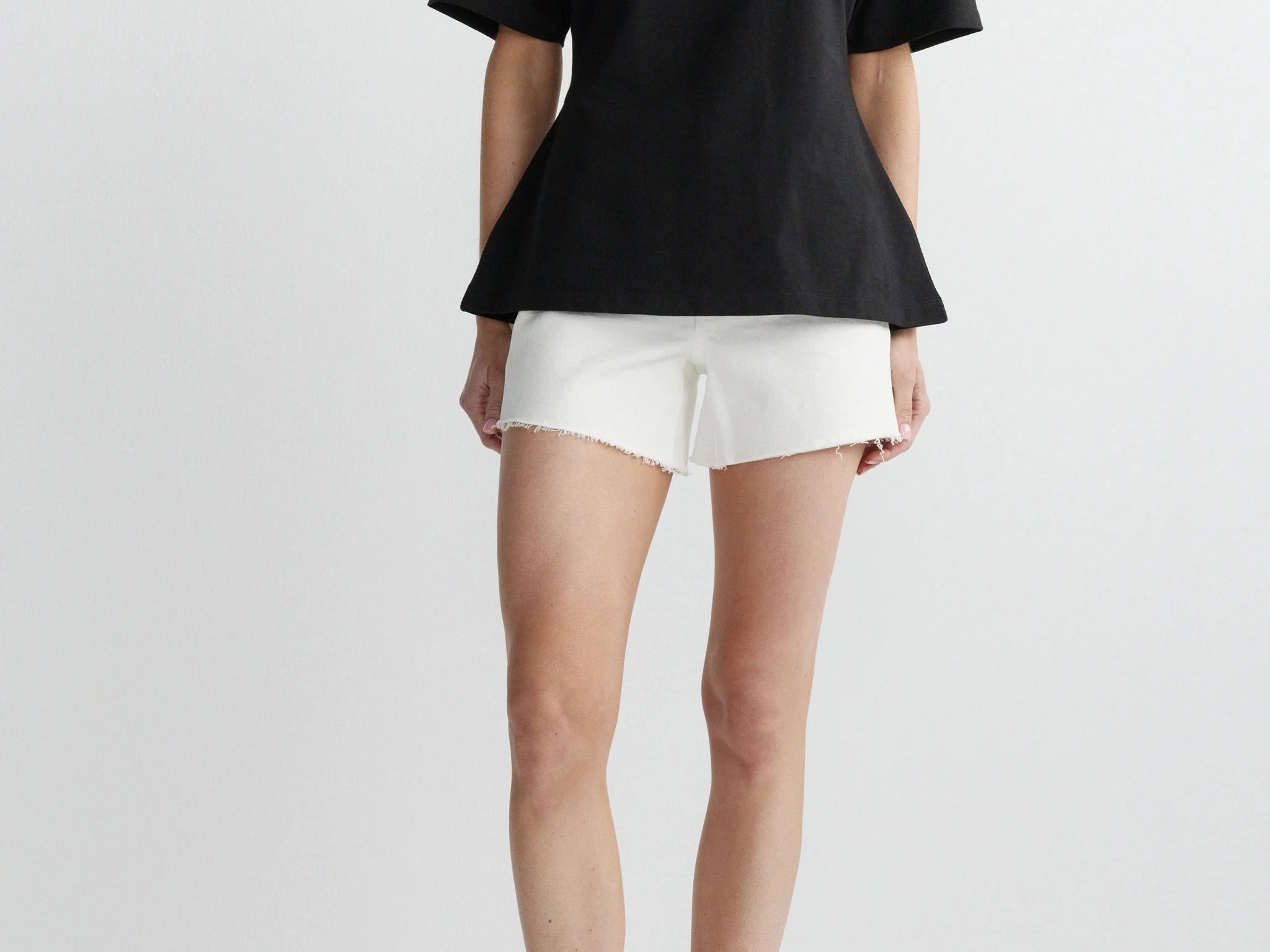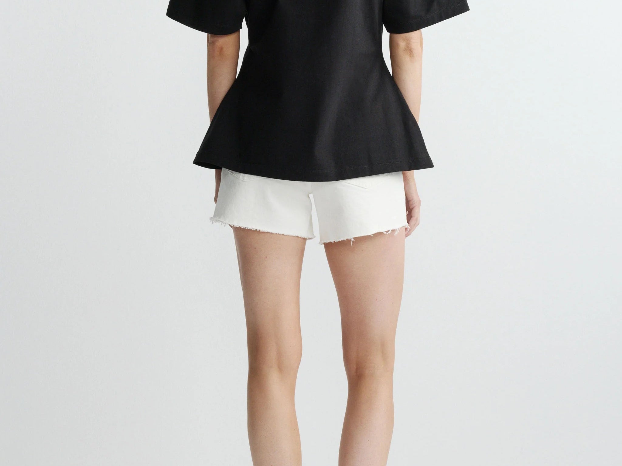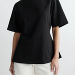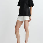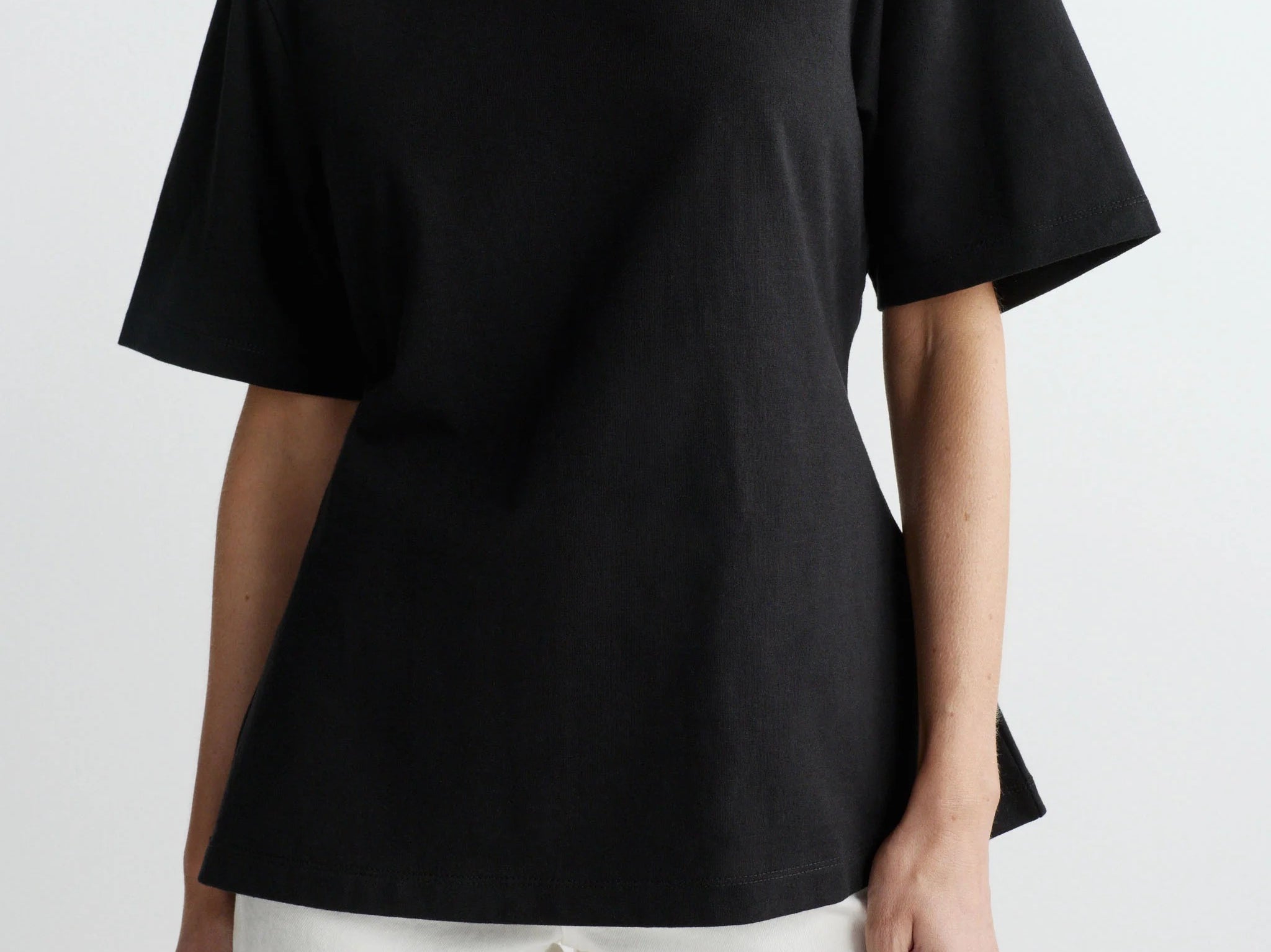 Introducing DL1961's Girlfriend Tee in Black, a relaxed short-sleeved plain t-shirt silhouette. Designed with a double-stitched cut-off seam on the back and made from cotton material. Pairs perfectly with your denim or tailored bottoms.