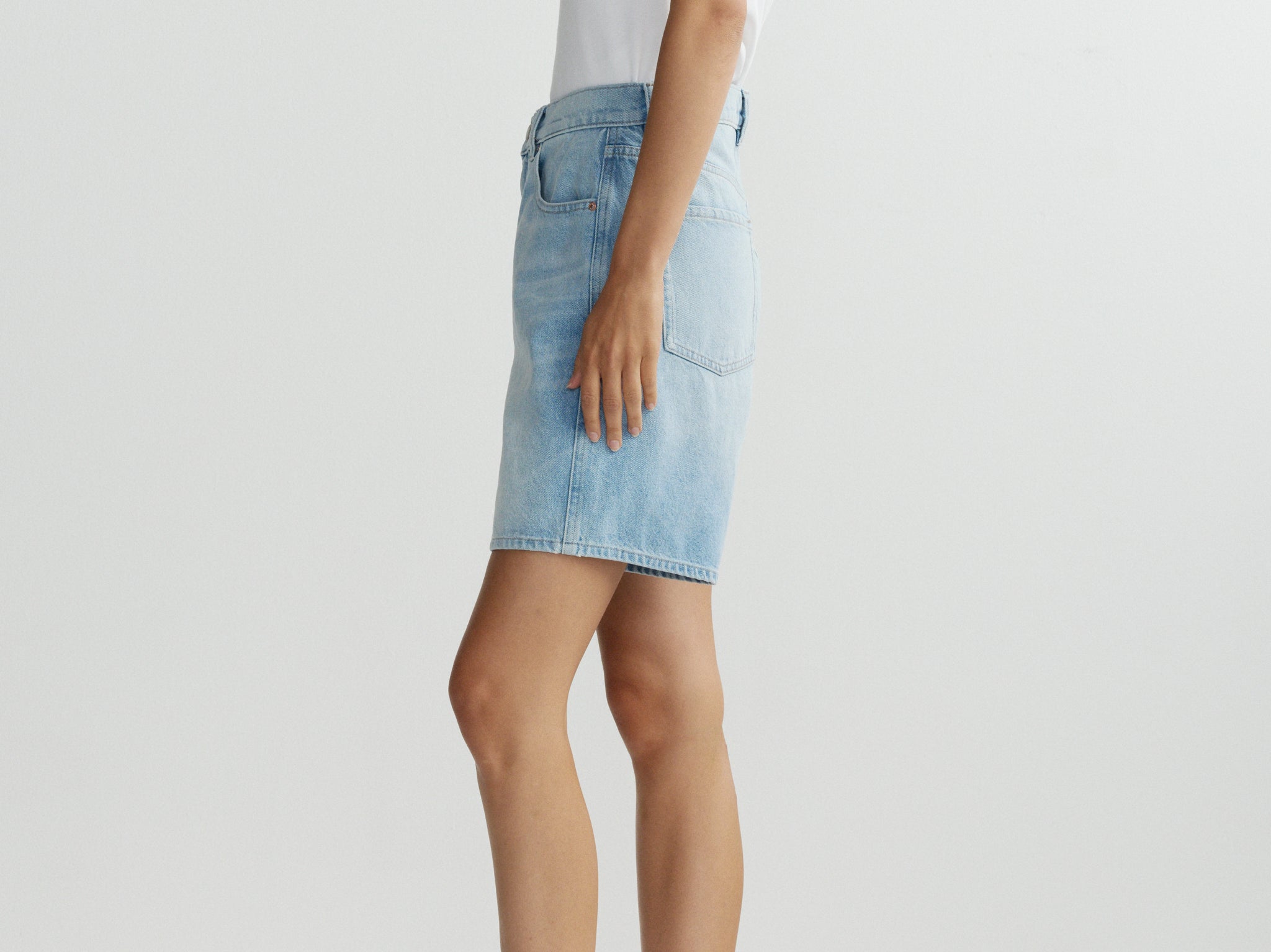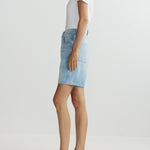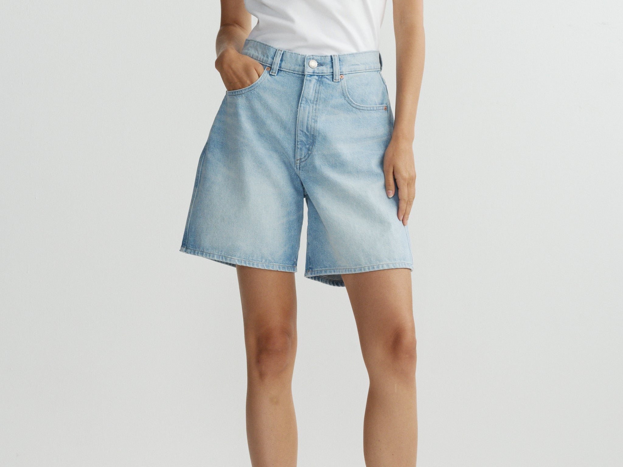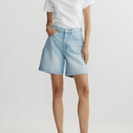 Introducing DL1961's Taylor Relaxed Denim Short in Praire, a relaxed denim short silhouette in vintage light blue. Crafted from regenerative cotton with a high-rise fit, relaxed silhouette, and wide leg opening, these shorts offer the perfect blend of ease and style. The clean hem adds a crisp finish, making them perfect for pairing with a simple tank or oversized shirt for an effortlessly elevated summer outfit.