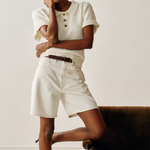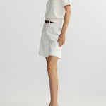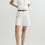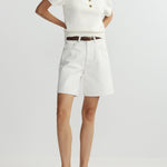 Introducing DL1961's Taylor Relaxed Denim Short in White, a relaxed denim short silhouette in white. Crafted from 100% cotton with a high-rise fit, relaxed silhouette, and wide leg opening, these shorts offer the perfect blend of ease and style. The clean hem adds a crisp finish, making them perfect for pairing with a simple tank or oversized shirt for an effortlessly elevated summer outfit.