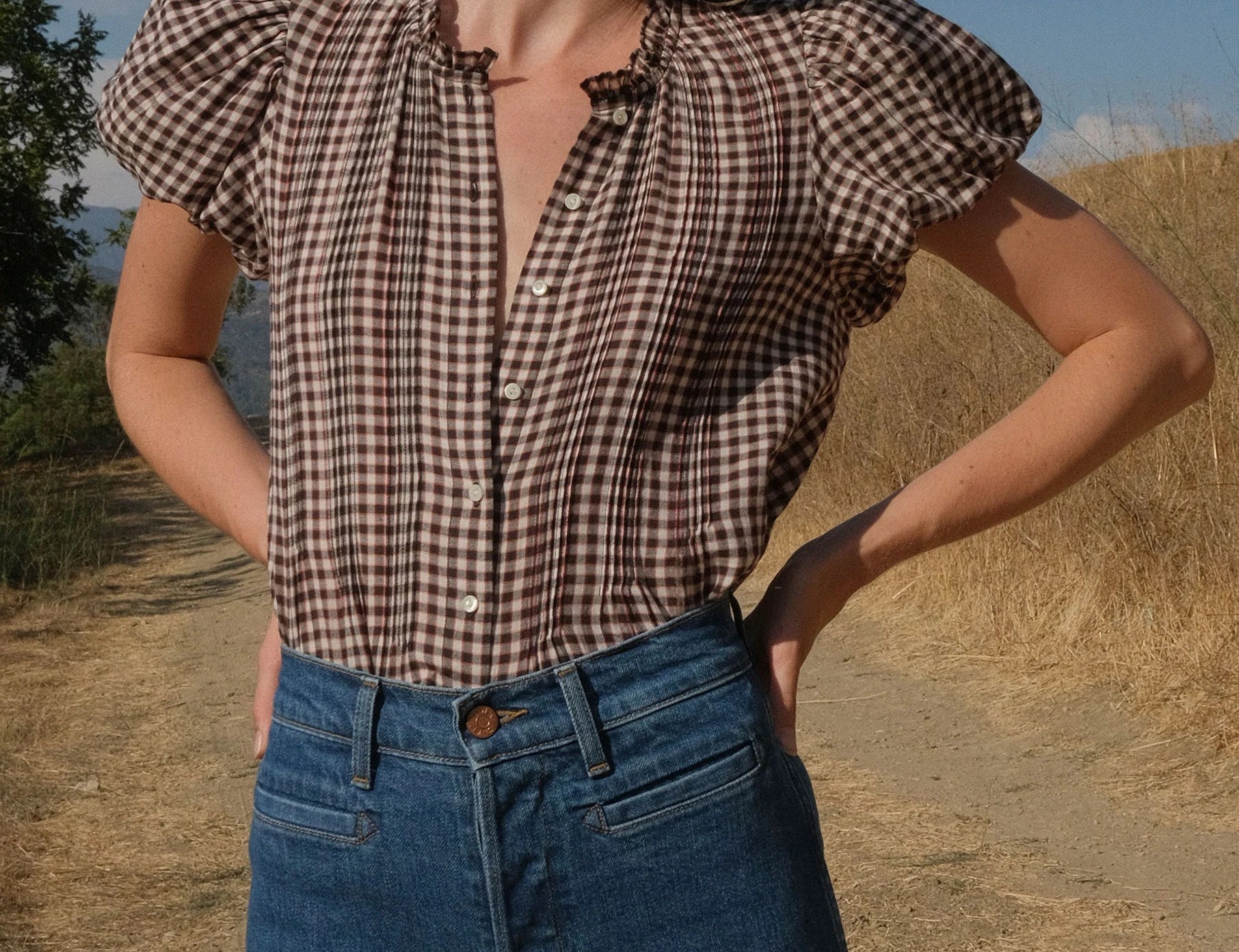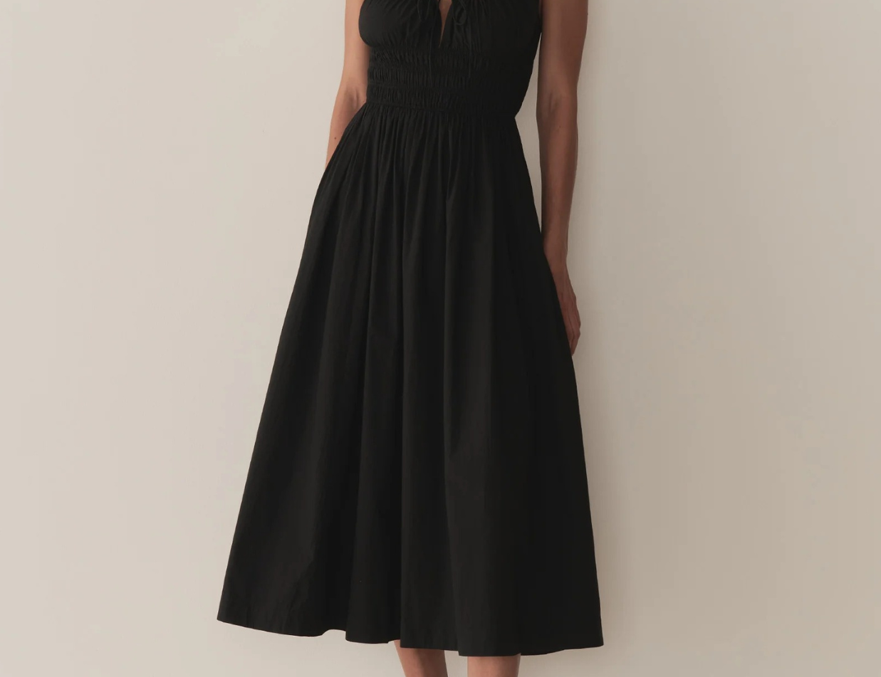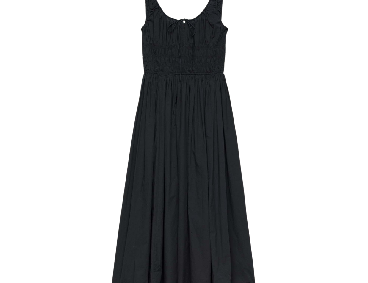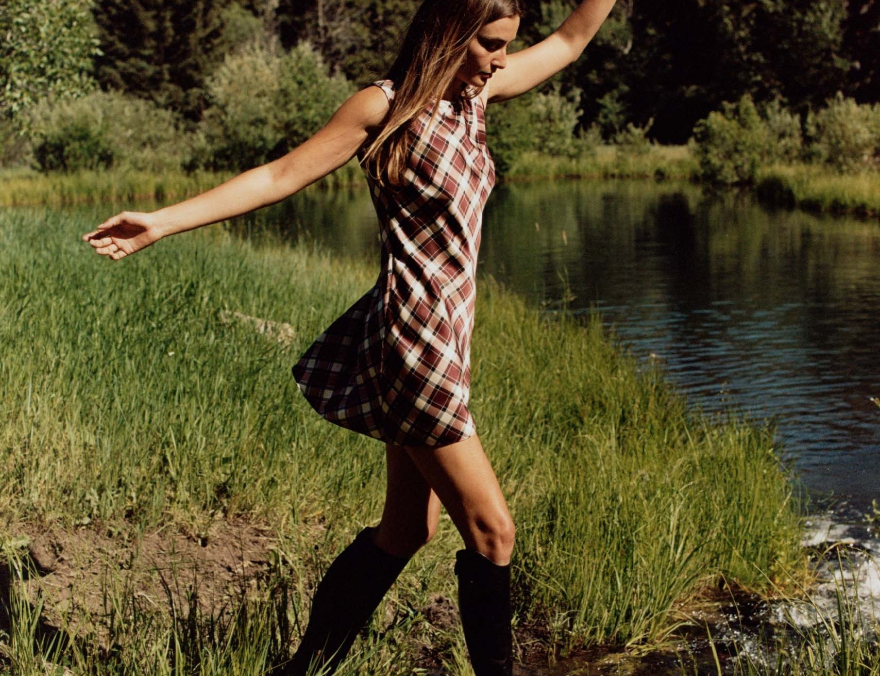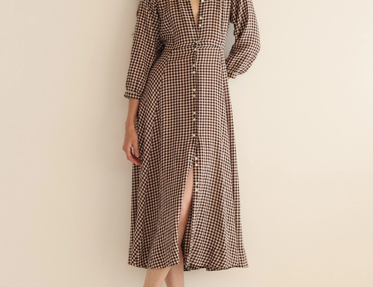 Introducing Doen's Coralie Dress in Black Marilyn Gingham . Crafted from a lightweight rayon-linen blend and rendered in our nostalgic Marilyn Gingham, the Coralie is a ‘60s-inspired sleeveless shift dress with a crew neckline, a straight cut, and a playful mini hemline. Shell buttons fasten at the side seam and shoulder.