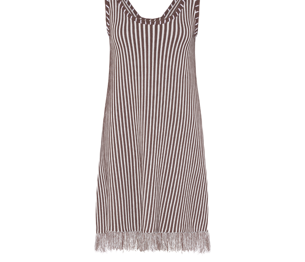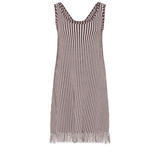 Introducing Elka Collective’s Alessandra Mini Dress in Chocolate Stripe, a sleeveless knit mini dress in chocolate stripe. Designed with a round neckline and a relaxed silhouette, this striped brown mini dress falls effortlessly above the knee. The vertical chocolate and ivory stripes create a flattering elongating effect, while the fringed hem adds a touch of texture and playful movement.