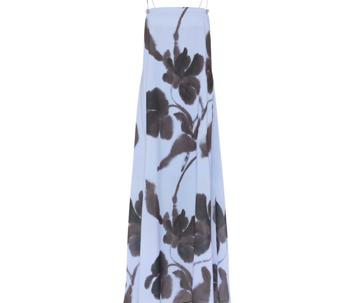 Introducing Elka Collective’s Monet Maxi Dress in Chocolate Floral Print, a slip maxi dress silhouette. Designed in a semi-sheer fabrication with delicate spaghetti straps and a straight neckline, the Monet maxi dress drapes softly over the body to the ankle. The tonal blue base features an abstract chocolate floral print, offering a contemporary take on romantic dressing. Ideal for long lunches or summer occasions, pair with minimalist heels or slides.