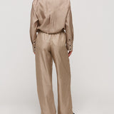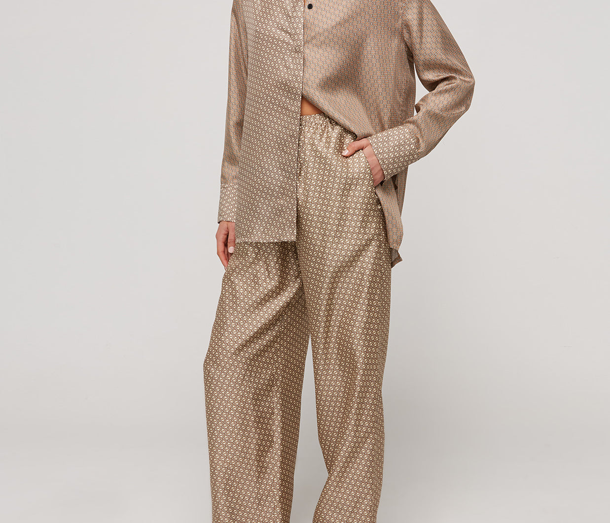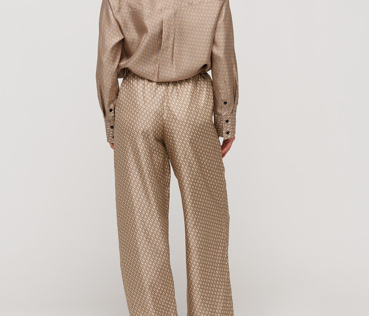 Introducing Esse's Studios Linka Silk Pants, featuring a relaxed, gathered silhouette finished with an elasticated waistband. Crafted in this season's exclusive monogram print, it pairs back effortlessly with the patching pant for the complete ensemble.